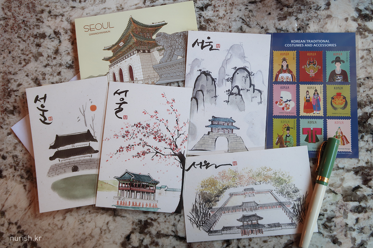 포스트크로싱에 쓰기 위하여 창덕궁에서 산 엽서들과 스티커