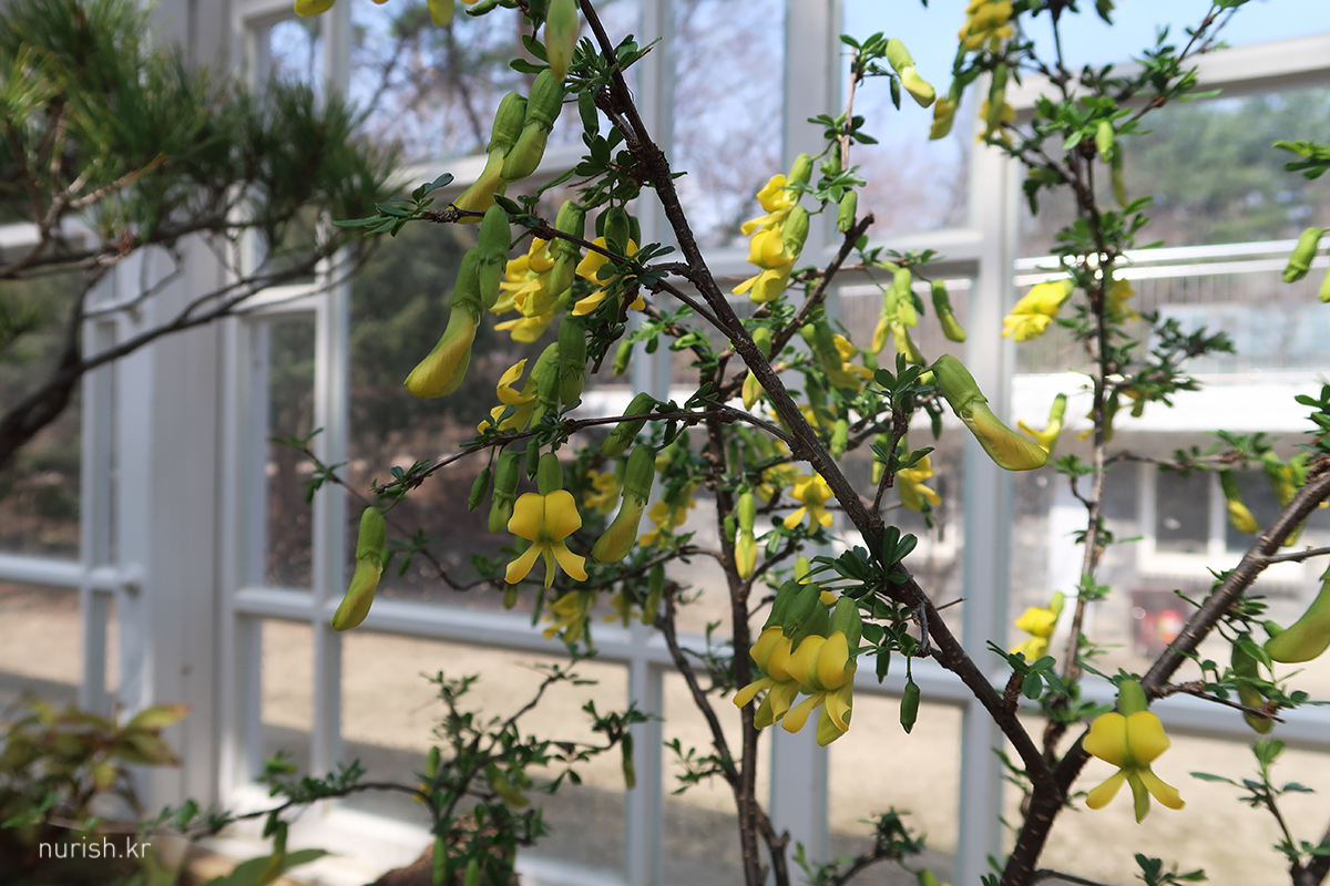 맞은편에 있는 작은 나무는 꽃봉오리 조금씩 열리는 중
