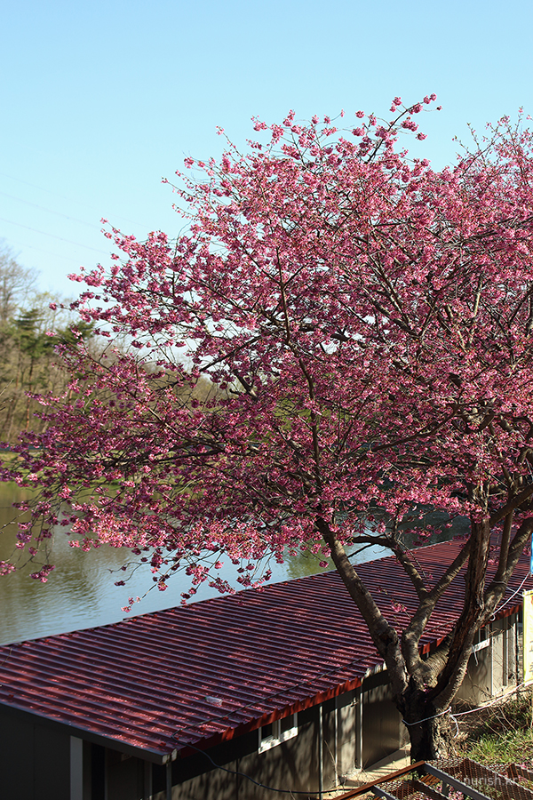 두 번째 목적지는 황토낚시터. 진분홍 벚꽃이 예쁜 곳이다.