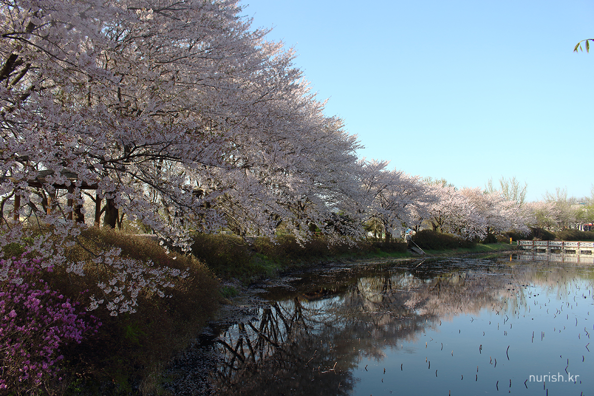 당진으로 벚꽃놀이 가는 길. 벚꽃 만개가 서울보다 일주일 정도 늦다는 당진. 주중에 비가 와서 좀 걱정했는데, 도착하니 딱 좋은 시기였다. 서울에서 벚꽃 다 진 모습을 봐서 그런가 시간 여행하는 기분이다.