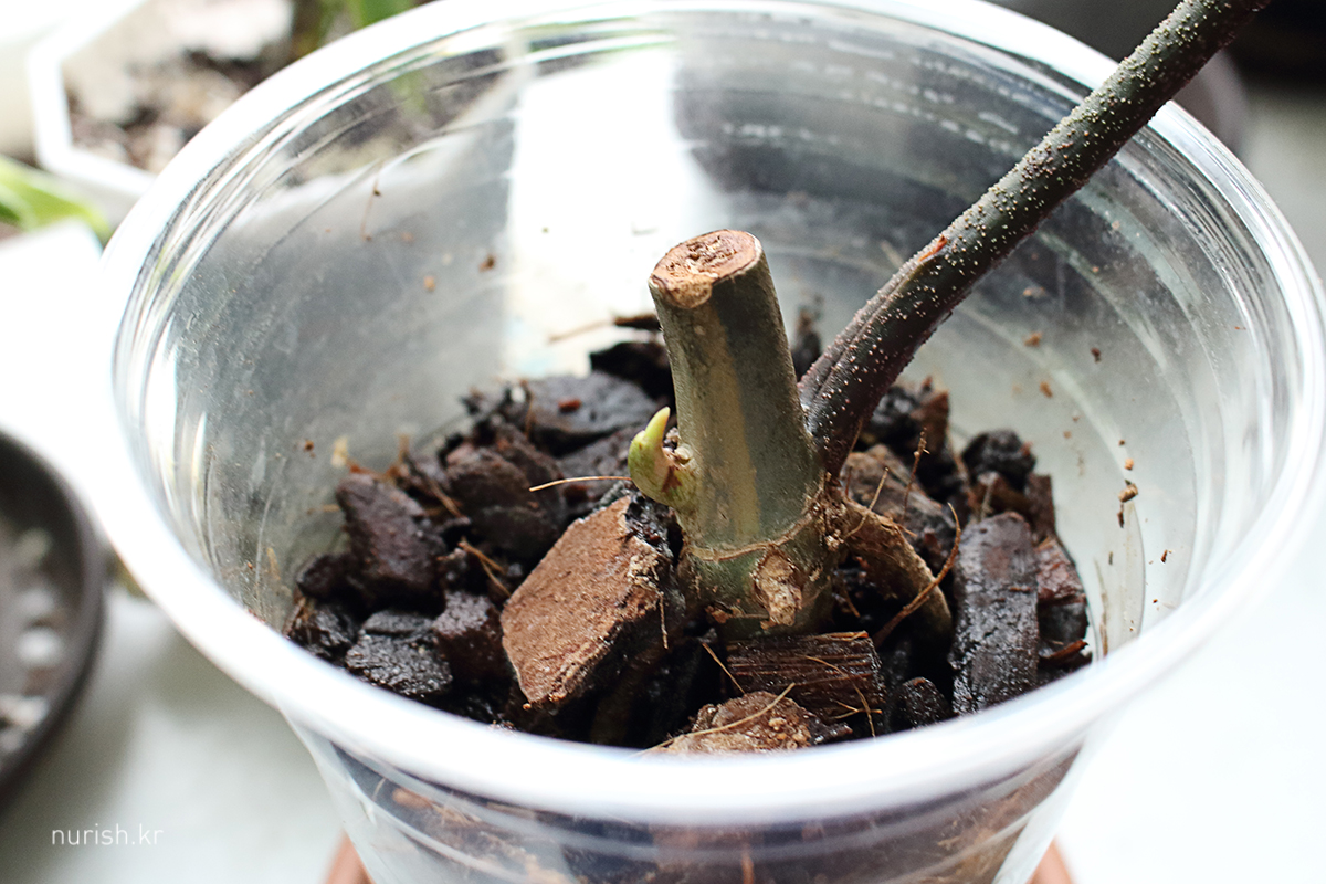 삽수는 다 잎이 떨어져 버려서 몽둥이만 남았는데ㅜㅜ 바텀은 무탈하게 순화 완료 줄기 하나 새잎 짠