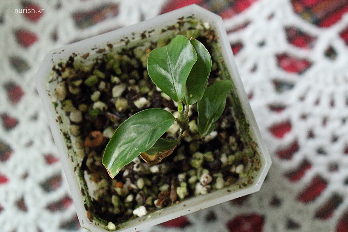 순둥순둥 예쁜이인데 물이 고여 있었는지 아랫쪽 잎 몇 개 상해서 맴찢 ㅜㅜ