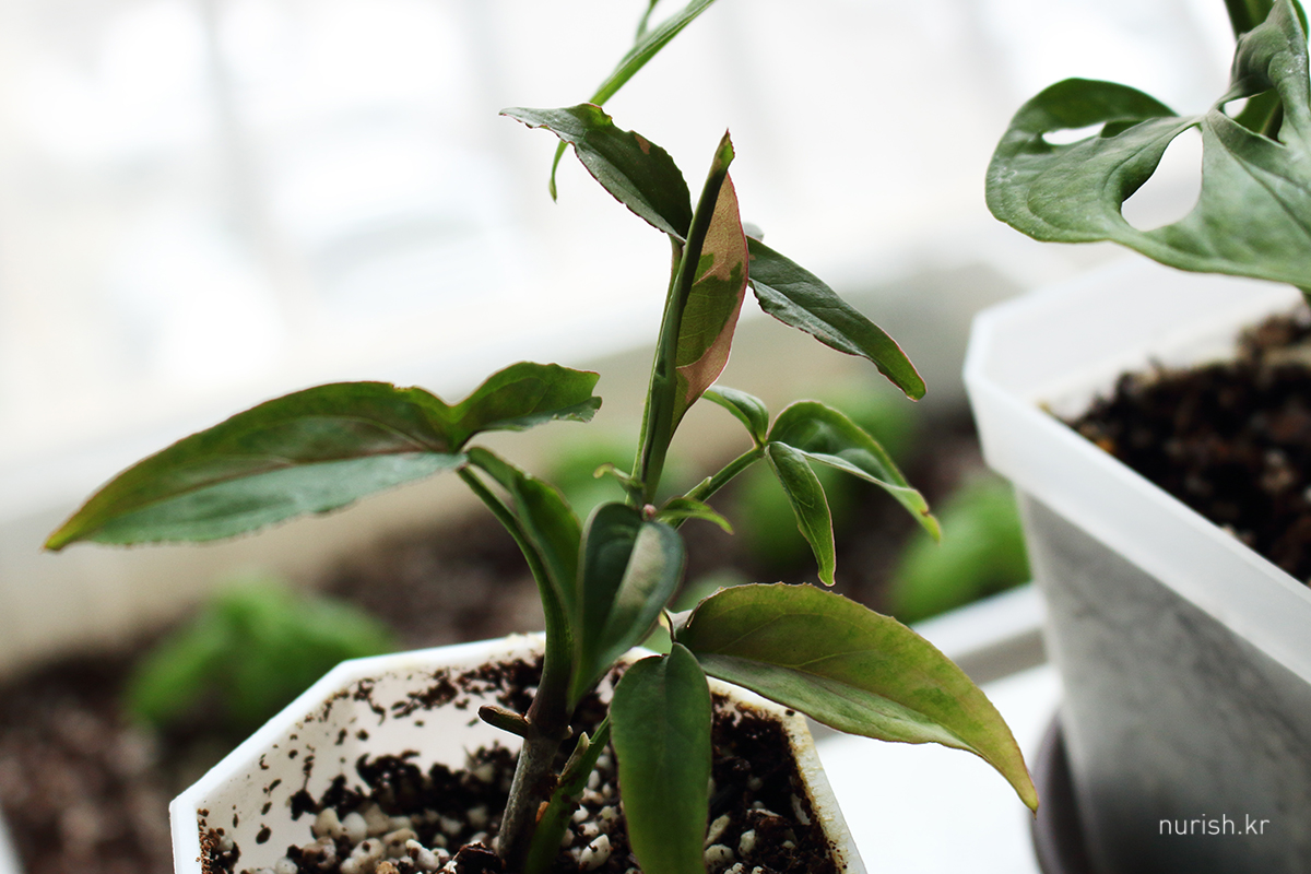 조녜 은펄이 사진으로는 잘 안 잡히는 게 아쉽 ㅜㅜ 신엽 색은 오묘한 붉은 빛이 섞여서 너무 예쁘다.