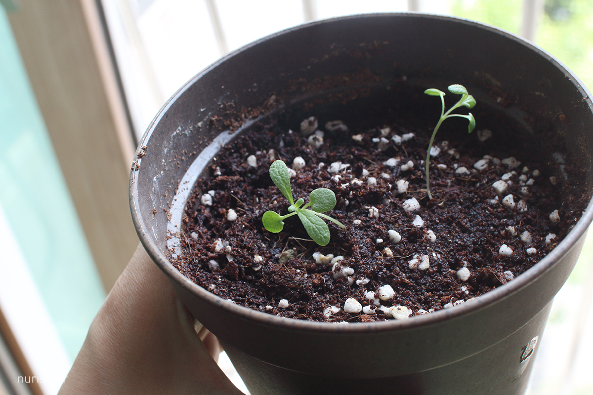 얼마 전에 파종한 로즈마리, 일주일 동안 물 주는 걸 깜박해서 씨앗이 다 말라버렸을 줄 알았는데 감사하게도 싹이 텄다. ㅜㅜ