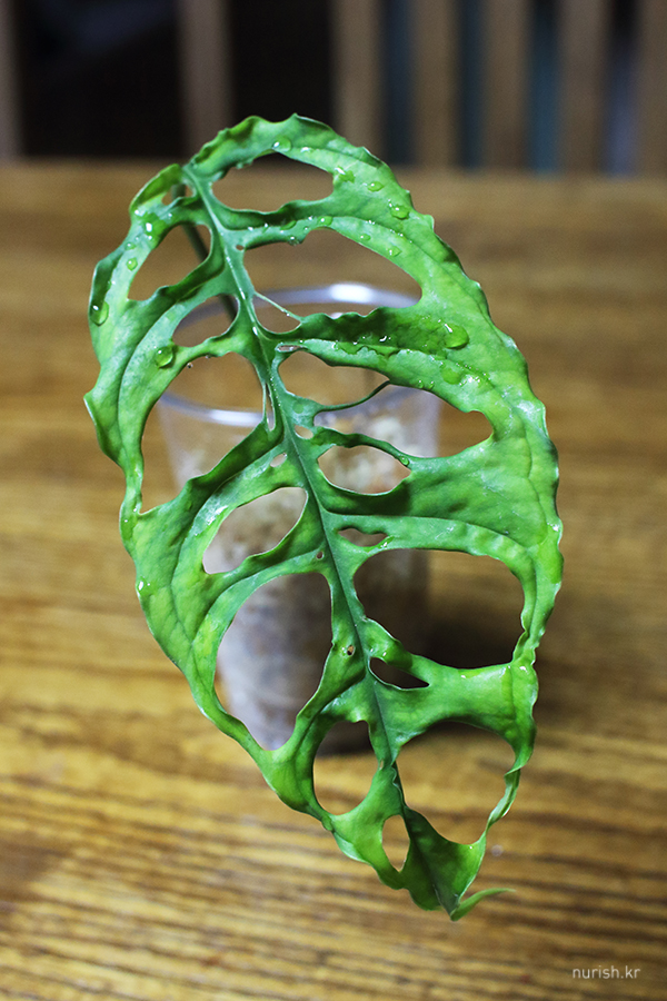 보고만 있어도 배부른 녀석을 데려 왔다. 우리집 일곱 번째 몬스테라인 몬스테라 오블리쿠아 페루(Monstera Obliqua Peru). 작년까지만 해도 입이 떡 벌어지는 몸값이라 언감생심 꿈도 못 꿨는데, 몇 달 사이에 가격이 아주 많이 떨어졌다. 잎 한 장 당 500만원 시절이 있던 게 실화냐고요ㅠㅋㅋㅋ 몬스테라답게 순둥한 데다가 이파리마다 생긴 모습이 다른 무늬종이 아니라서 하락폭이 더 큰 것 같다. 앞으로 더 떨어질 거 같긴 하지만 나한테는 지금이다 싶어 용기 내어 데리고 온 삽수. 아니, 지난달에 플뷰 데리고 왔을 때만 해도 이제 내가 감당할 수 있는 위시는 끝났다 이랬는데 ㅋㅋㅋ 희희 아무튼 저녁도 안 먹었는데 보고만 있어도 배부르다. 여리여리한 저 프릴 테두리에 너덜너덜한 구멍들 너무 예뻐♡