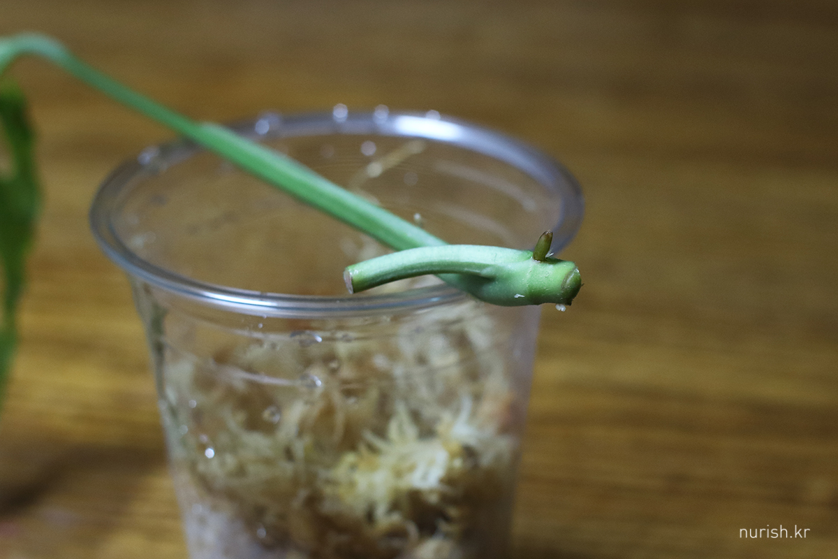 하지만 갓 커팅한 삽수라 ㅋㅋ 아직 갈 길이 멀다. 뿌리도 더 받아야 하고, 눈도 터야 한다. 습을 좋아한다기에 빠른 순화를 위하여 일단 퓨화 전용 간이 온실에 넣어놨는데, 무럭무럭 자랄 때까지 잘 모셔봐야겠다.
