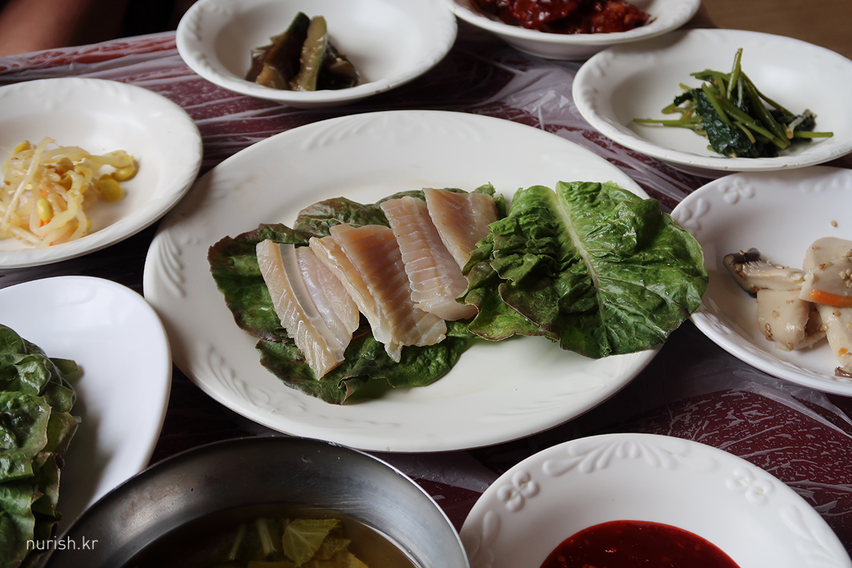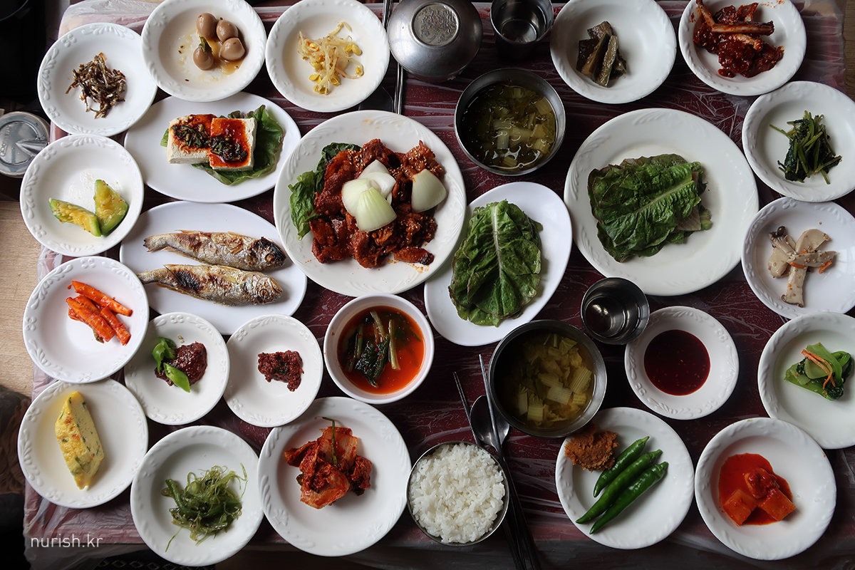 기본상 2인분 - 방석만 덩그라니 있는 방에 앉아 있으니 상채 들고 오셨다. ㅋㅋ