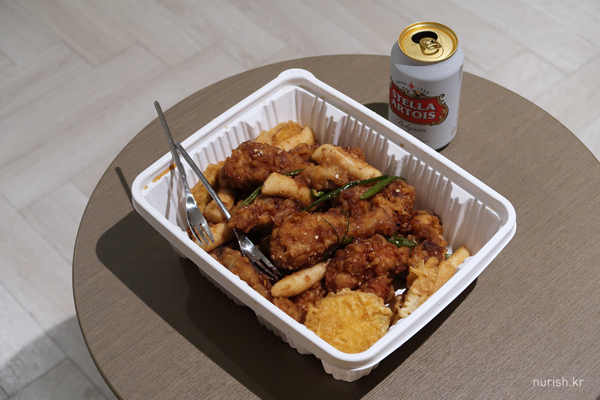 저녁은 읍내에서 점심 먹고 포장해 온 모아통닭의 간장치킨