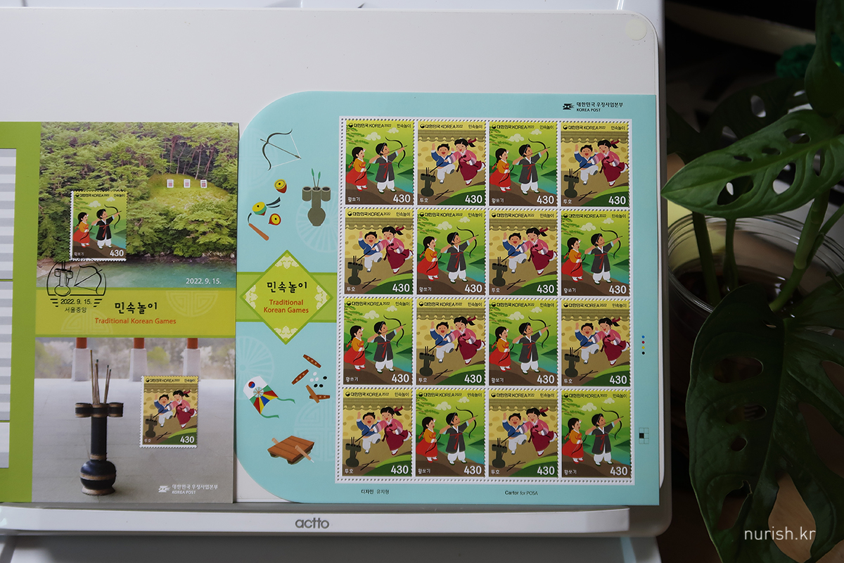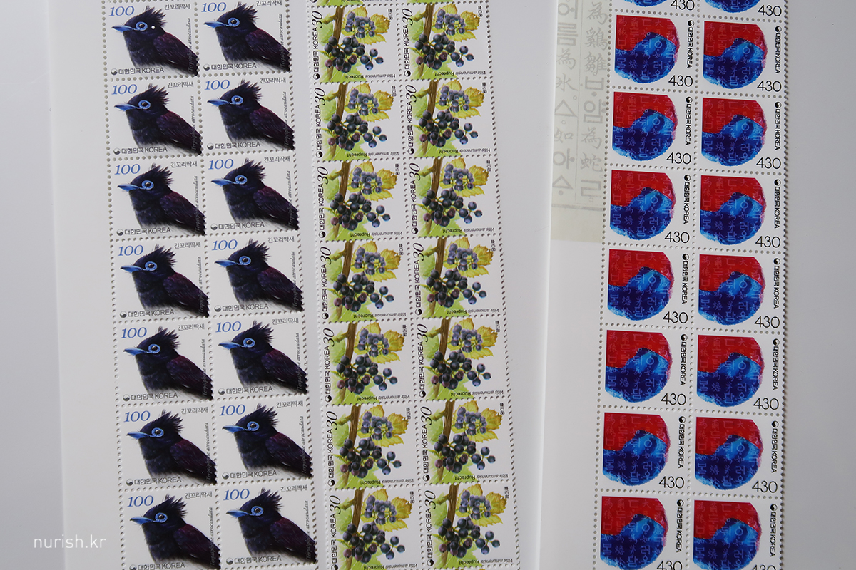 기본 우표 430원짜리 사러 갔다가 우체국 직원님이 '민속놀이' 우표도 새로 나왔다고 알려주셔서 구입! 포스트크로싱 엽서 보낼 때 요긴하게 쓰일 것 같다.