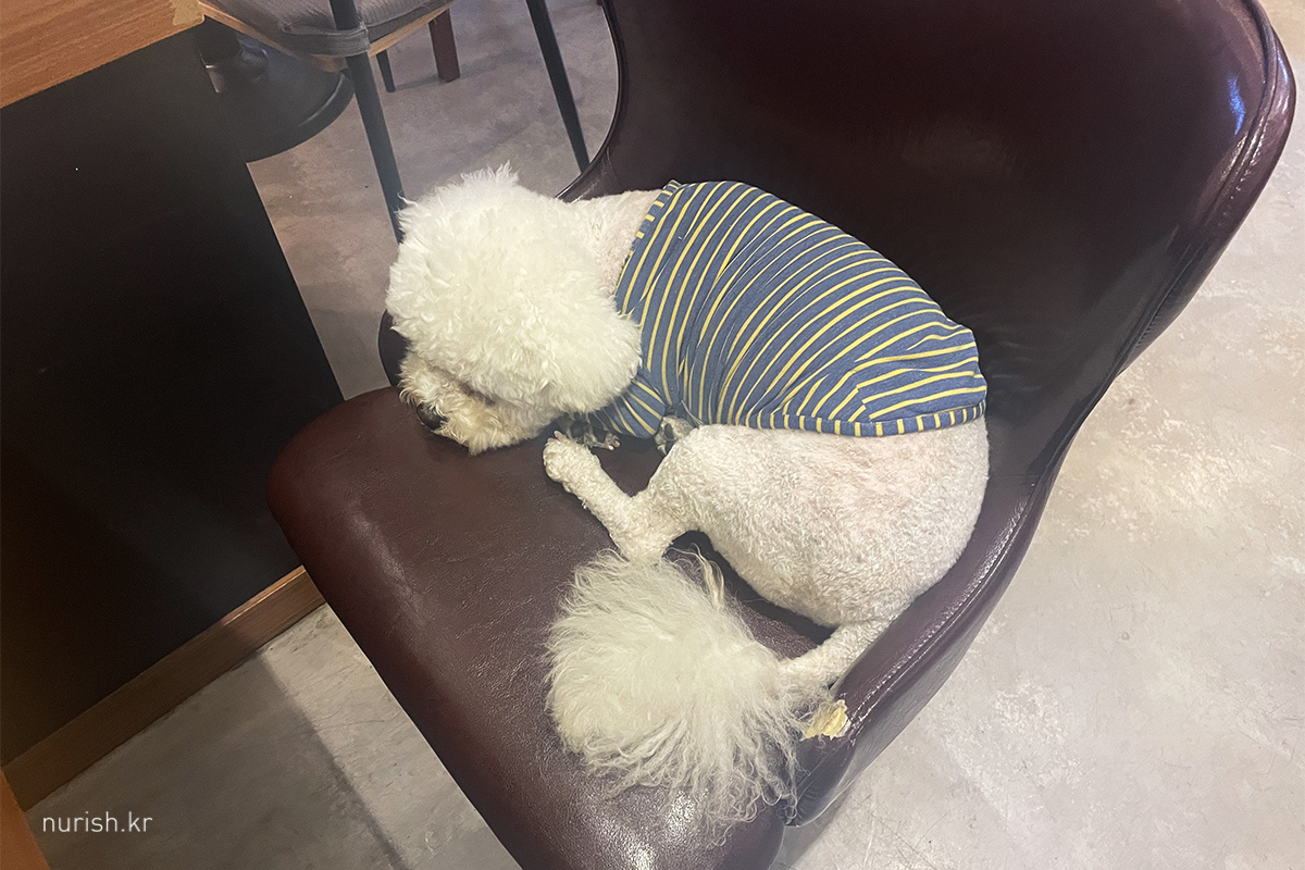 카페에는 요로코롬 귀여운 강아지가 있다.