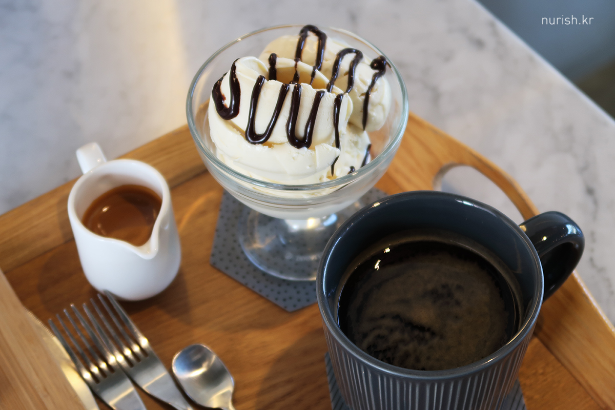 후식은 카페본어게인에서 아포가토와 따뜻한 아메리카노, 원두는 스윗비올라.