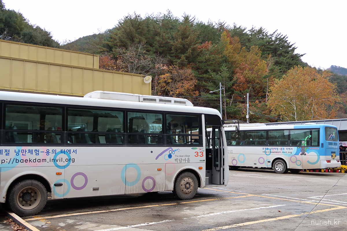 차는 주차장에 대놓고, 백담사로 올라가는 버스 기다리는 중. 철이 철인지라 사람이 진짜 많았다. ㅜㅜ 걸어 올리가기는 좀 힘든지라 느긋하게 기다리는 중. 30분 넘게 기다렸다가 버스 탑승 후, 십여 분 달리면 백담사 도착.