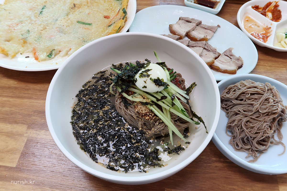 강원도에 왔으니 놓칠 수 없는 물막국수, 사리도 같이 주셔서 푸짐하게 먹을 수 있다.