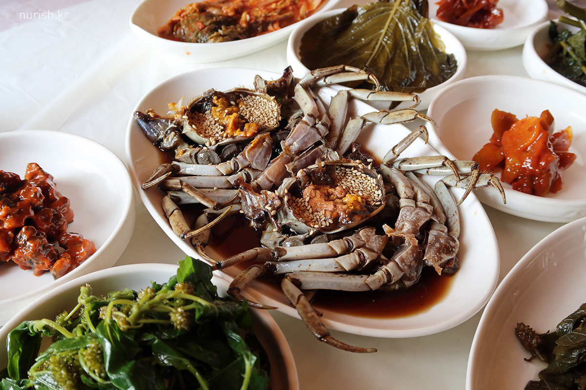 참게장과 사장님의 손맛이 가득 담긴 각종 장아찌 반찬!