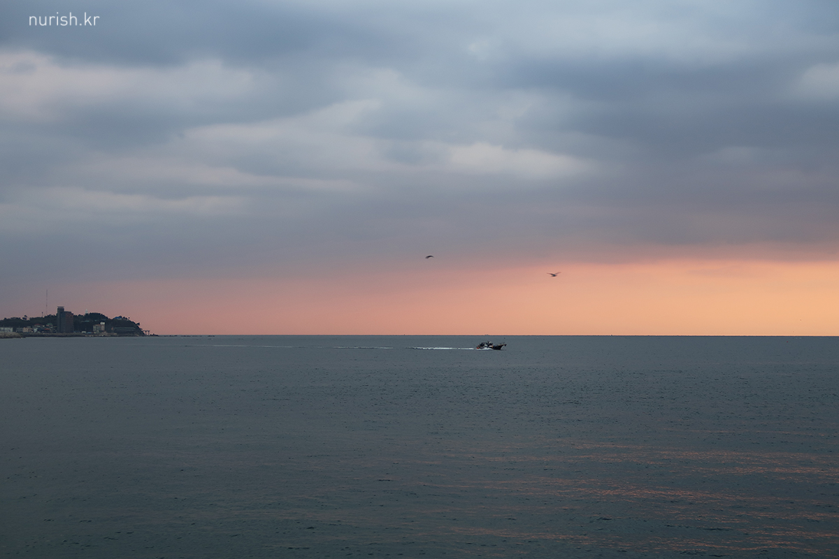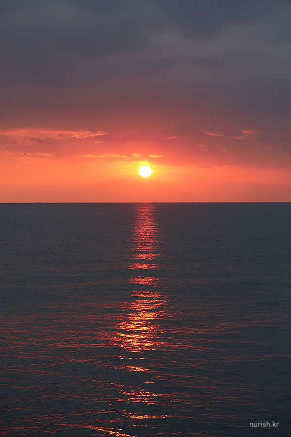 동해에 왔으니 해돋이를 봐야겠다고 시간 맞추어 숙소 앞 바닷가로 나왔는데,구름이 잔뜩 깔렸다.
