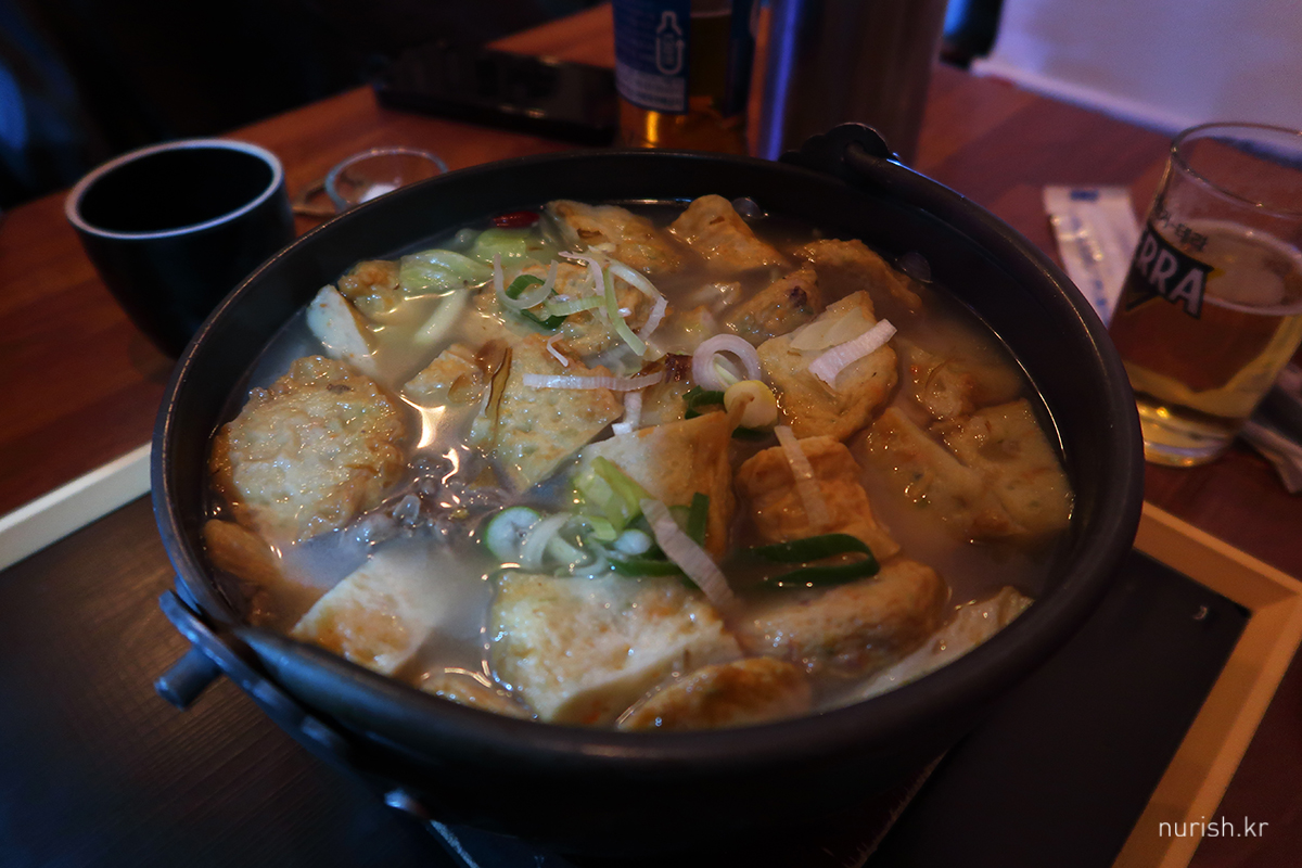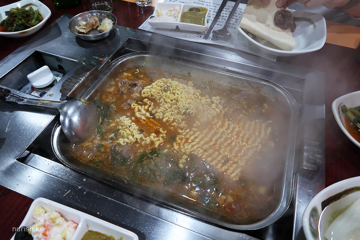 맛있게 먹고 나서, 전골로 마무리. 라면 사리 추가. 술이 그냥 술술 들어가는 국물인데 우린 왜 7시 퇴장 ㅜㅜ