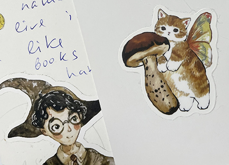 토끼 카드 뒤에 붙여준 귀여운 고양이 스티커