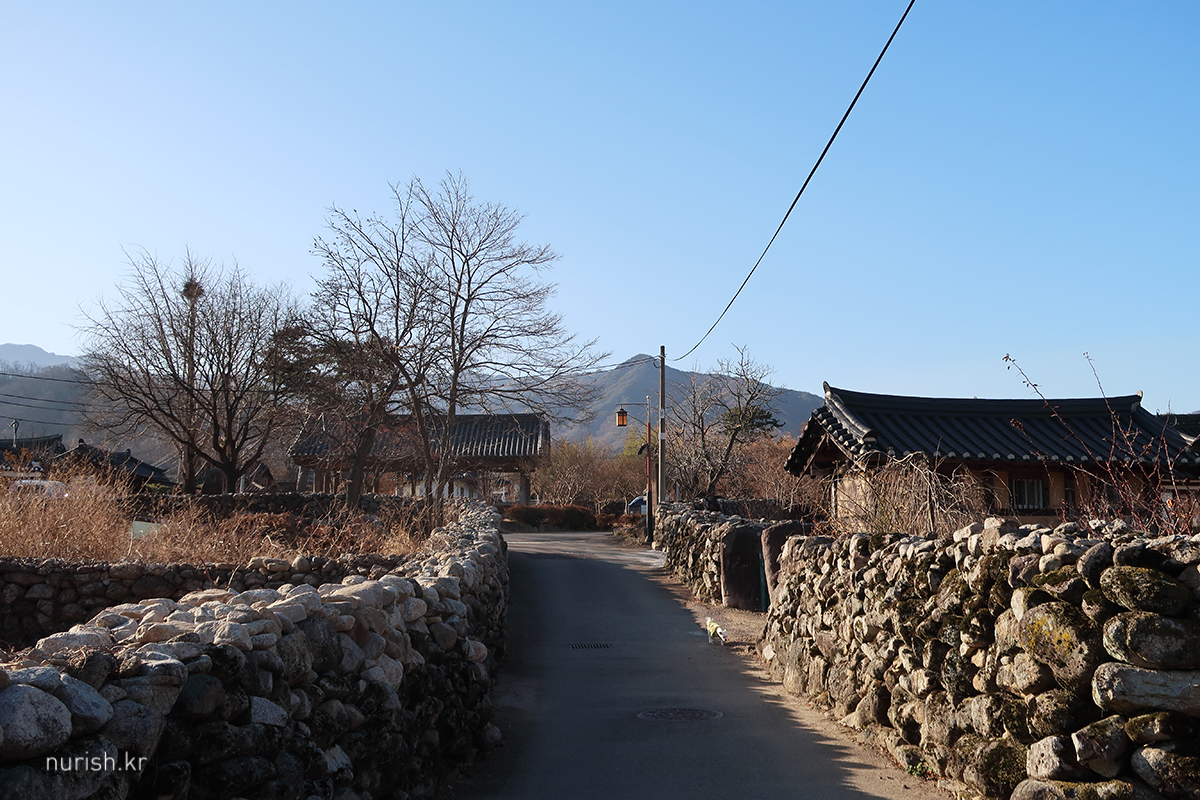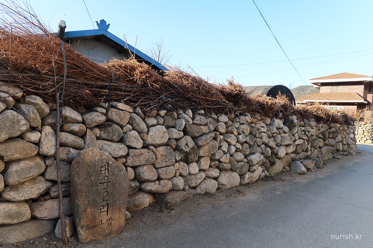 사유원에 가기 전, 잠깐 들른 대율리 한밤마을 - 돌담 때문에 내륙의 제주도라 불리는 마을이라고 한다.