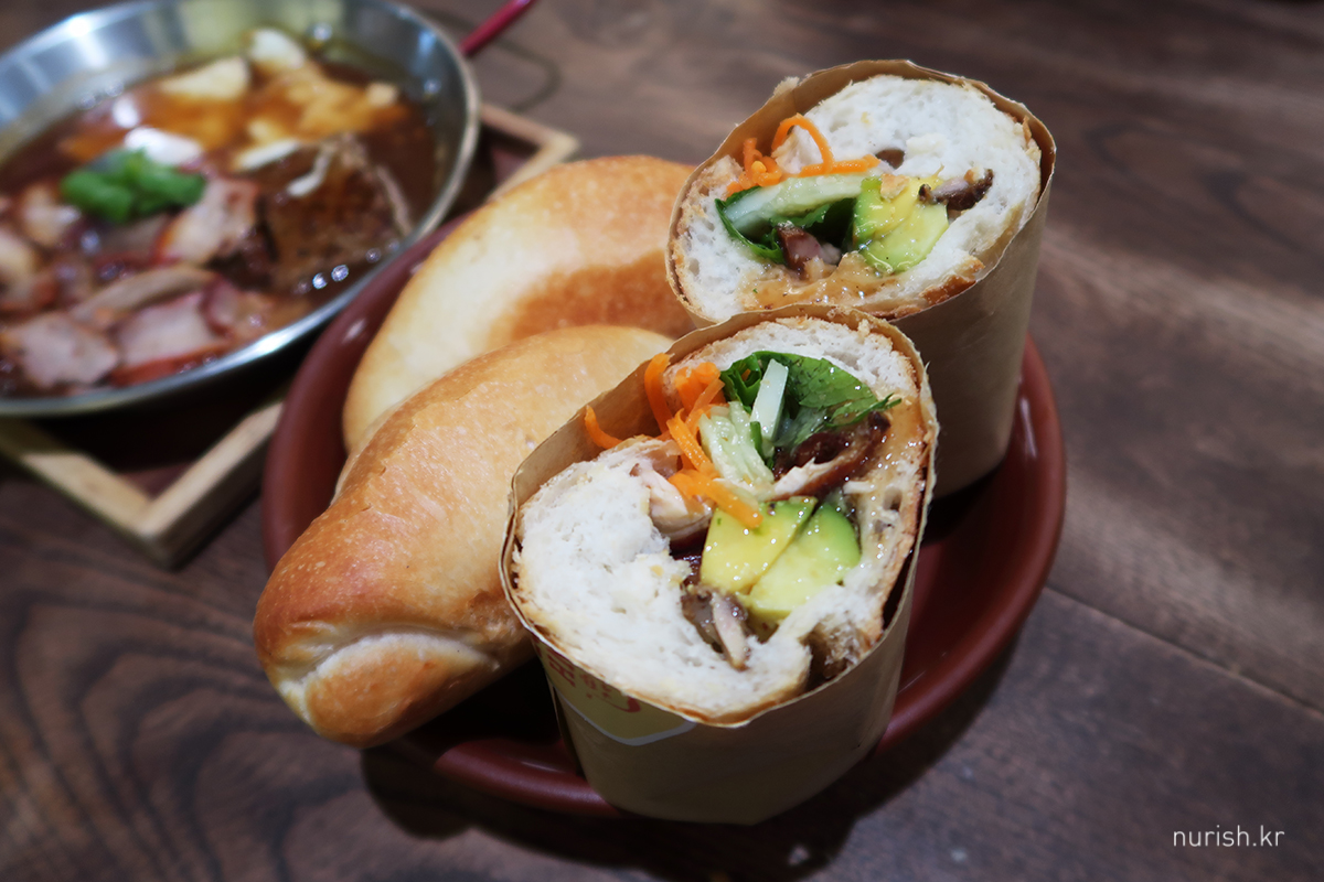 Bánh mì kẹp: 반미 샌드위치(닭고기와 아보카도)