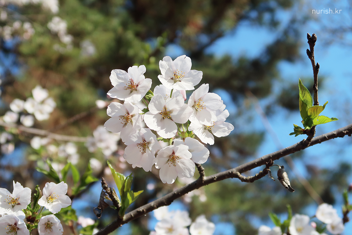 바다 건너 다녀온 사이에 한반도 벚꽃이 거의 끝나 버렸다. ㅜㅜ 지구 온난화 무슨 일이야 ㅜㅜ 인천공항에서 나오는 길에 벚꽃이 다 핀 걸 보고 놀라고 집에 도착할 무렵 라일락과 영산홍이 다 핀 것을 보고 또 놀랐다. 회사 가려고 양화대교 건너다가 초록으로 뒤덮인 선유도 보고 한 번 더 놀랐지. 올해 벚꽃놀이는 아직 시작도 안 했는데! 토요일 아침 피곤한 몸을 이끌고 벚꽃이 제일 늦게 만개하는 곳 중 하나인 인천 영종도로 달려왔다. 다행히 영종도 세계평화의숲은 한창 벚꽃 절정 시기이다.