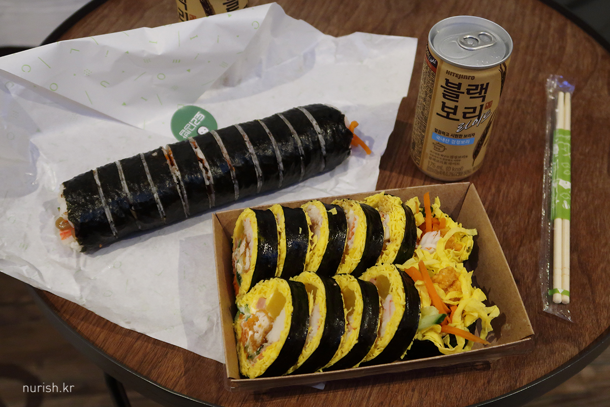 저녁은 간단히 먹으려고 숙소 근처에 있는 김밥집에서 사온 토리김밥과 키토 치킨마요 김밥 ㅋㅋ 오늘은 토리의 날인가요