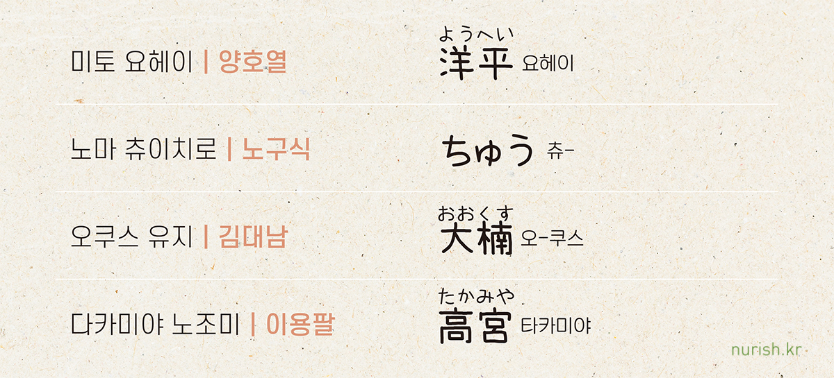 백호 군단 중 양호열은 강백호가 남성 캐릭터 중 유일하게 성도 별명도 애칭도 아닌 정직한 이름(요헤이)으로 부르는 상대이고, 노구식은 애칭(츄), 김대남과 다카미야는 '성'으로 부르는 중.