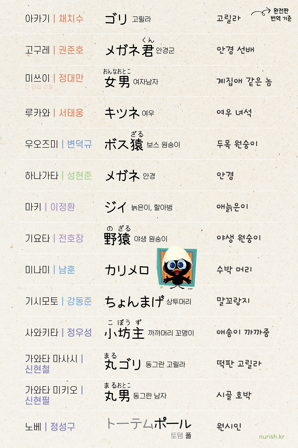 다만, 강백호가 김수겸에게 붙인 별명은 이러한 특징에서 유일하게 벗어나는데,