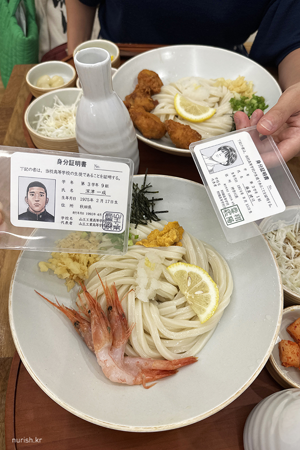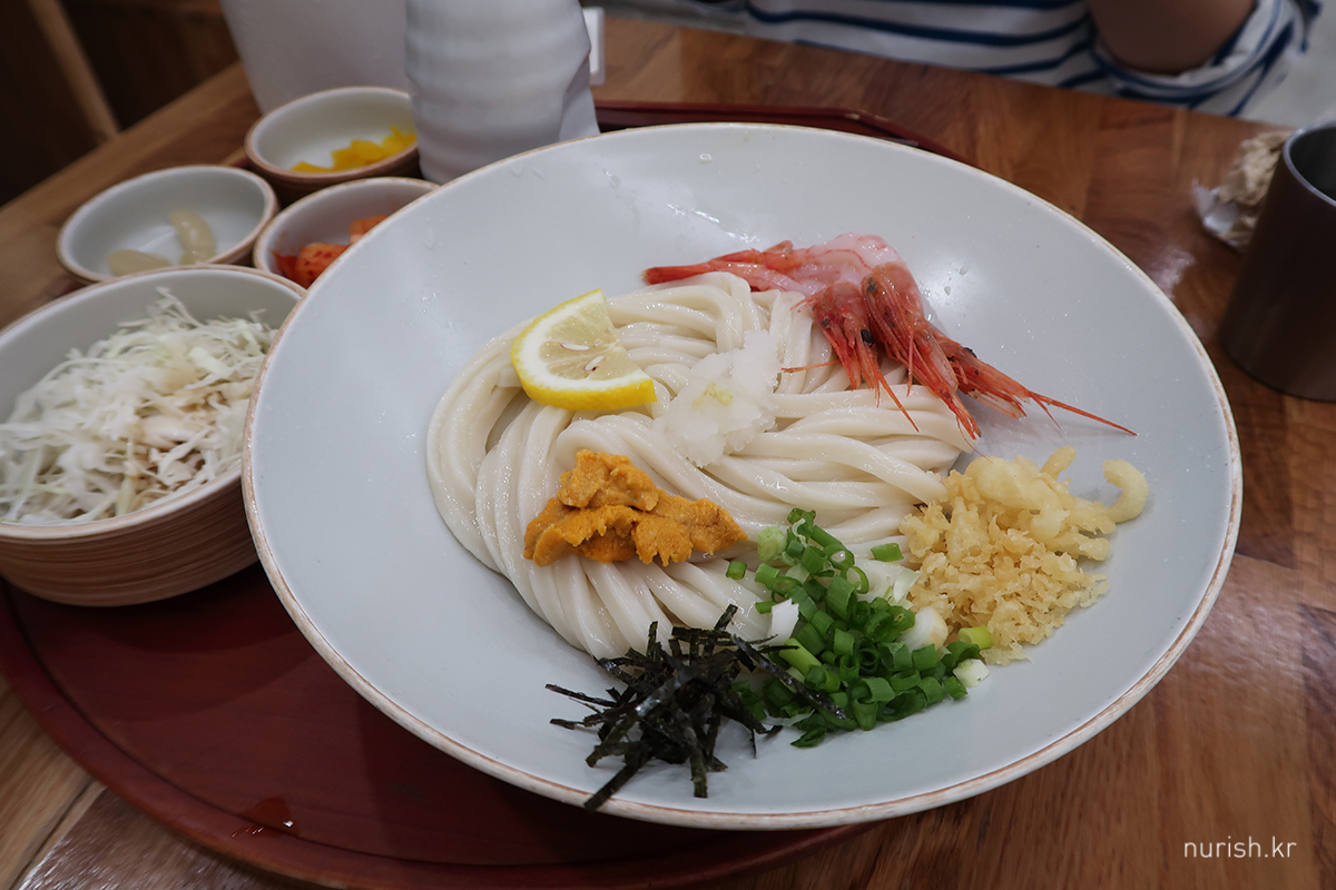 참, 주둥이 긴 병은 술병처럼 생겼지만 안에는 쓰유가 들어 있다. 우동 위에 붓고 나서 한번 더 사진 찍어야지 했는데 먹느라 정신없었다. 쓰유가 좀만 더 진했으면 좋았겠지만, 면은 쫄깃쫄깃 맛있었다. 다음에는 온우동이나 가마버터를 먹어봐야겠다.