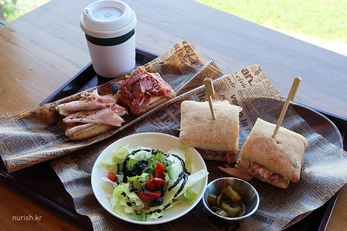 피자 먹고 싶어서 바다를 건넜는데! ㅋㅋㅋ 아쉽게도 도우가 다 떨어지는 바람에 ㅜㅜ 오늘 점심은 오픈샌드위치와 잠봉뵈르! 직접 만드신다는 소고기 햄 진짜 예술이다. 두툼하게 들어간 버터와도 아주 잘 어울린다. 조만간 피자 먹으러 다시 가야지 :)