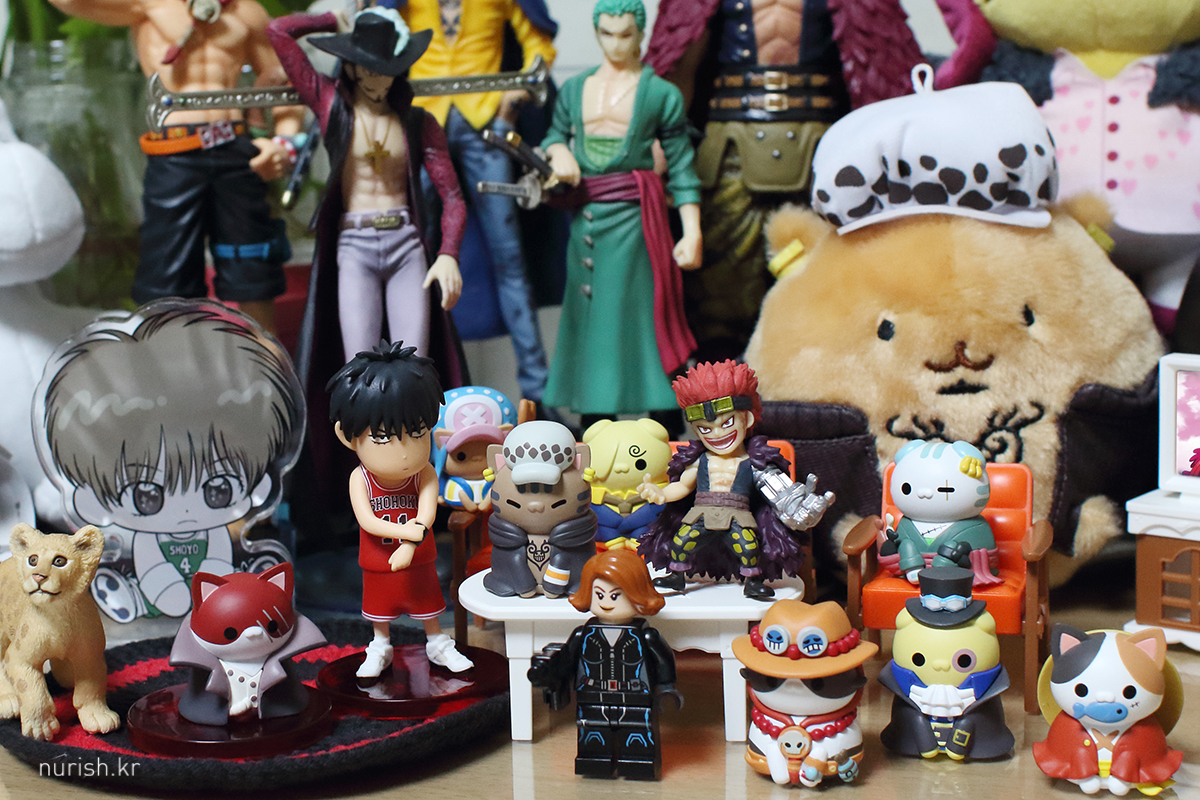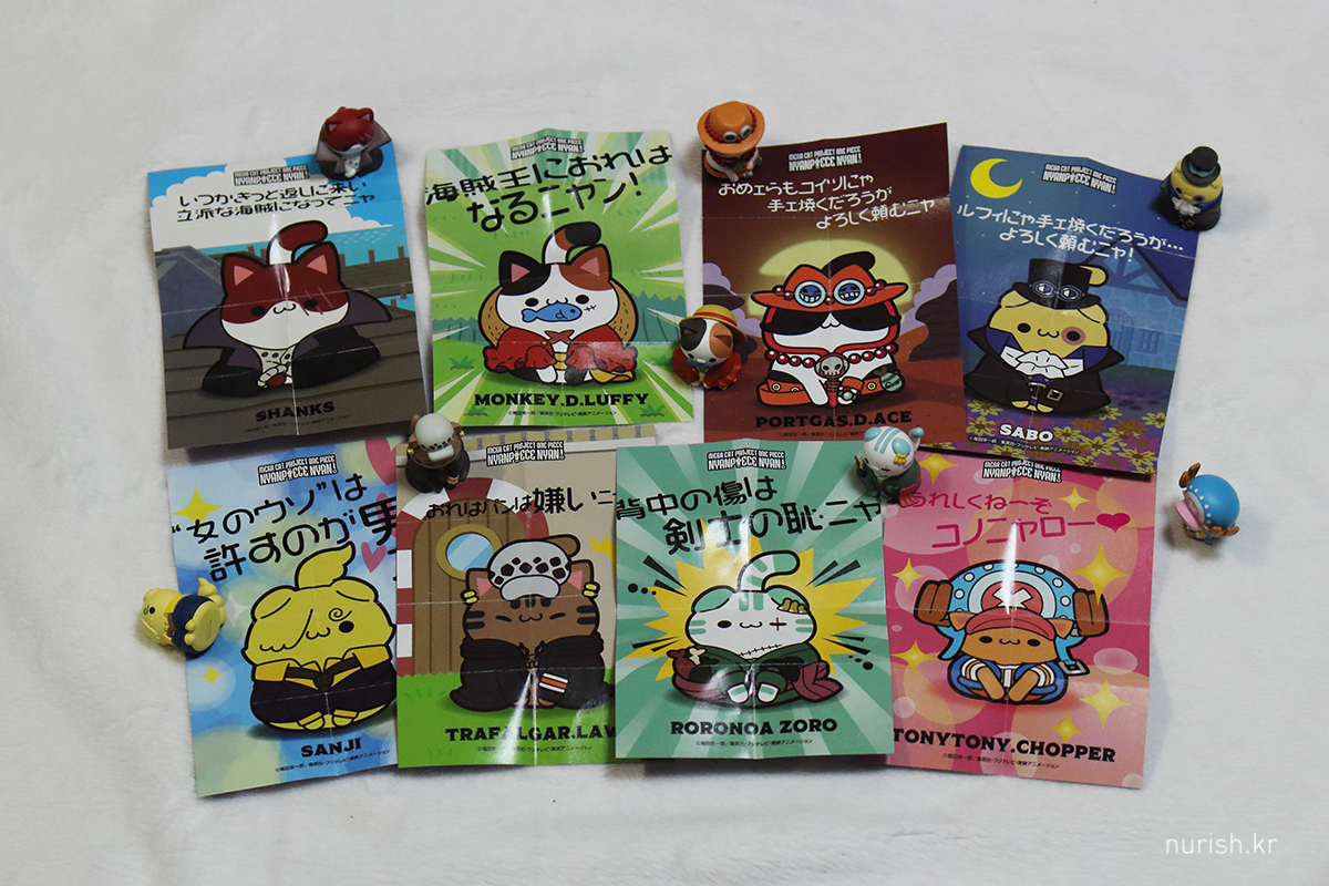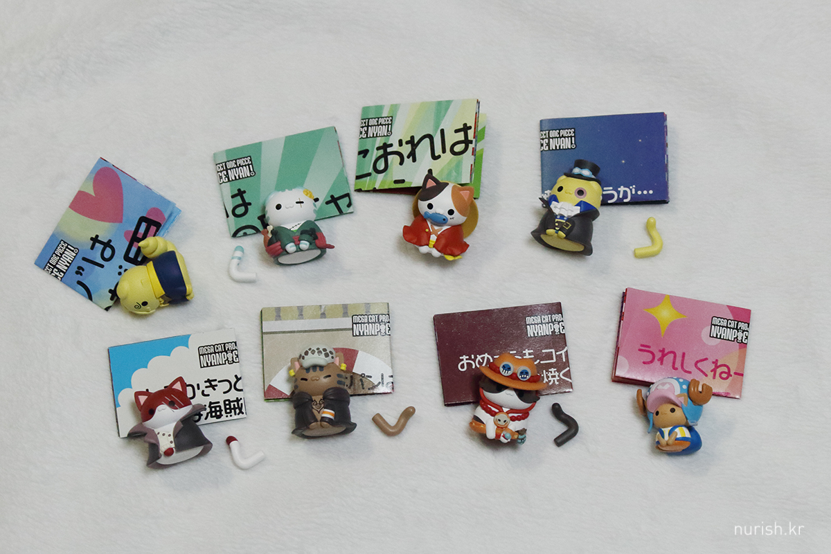 쨔잔, 상자 너무 과대 포장 아닌가요. 작을 줄은 알았지만, 생각보다 더 작고 귀엽ㅜㅜㅜㅜㅜ 루피냥, 상디냥, 쵸파냥은 꼬리가 붙어 있고 나머지는 꼬리를 조립해야 한다.