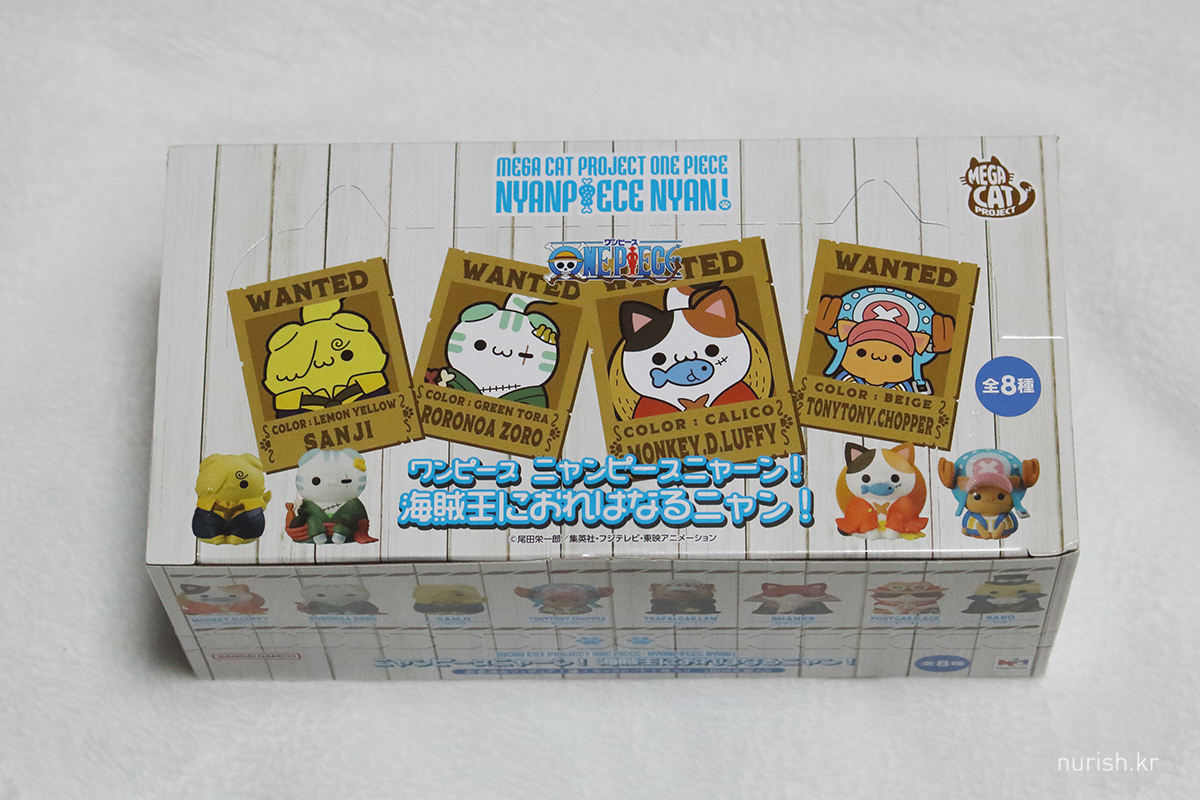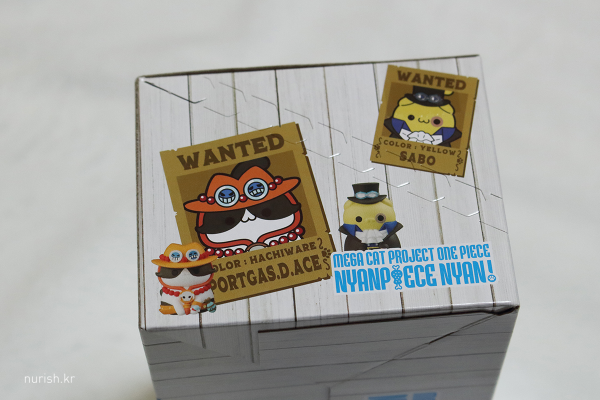 상자 정면에는 밀짚모자 해적단 상디냥, 조로냥, 루피냥, 쵸파냥 수배지가 그려져 있고,