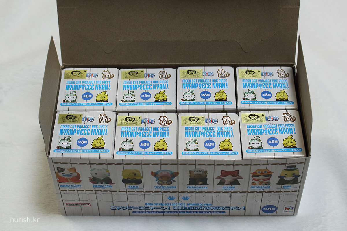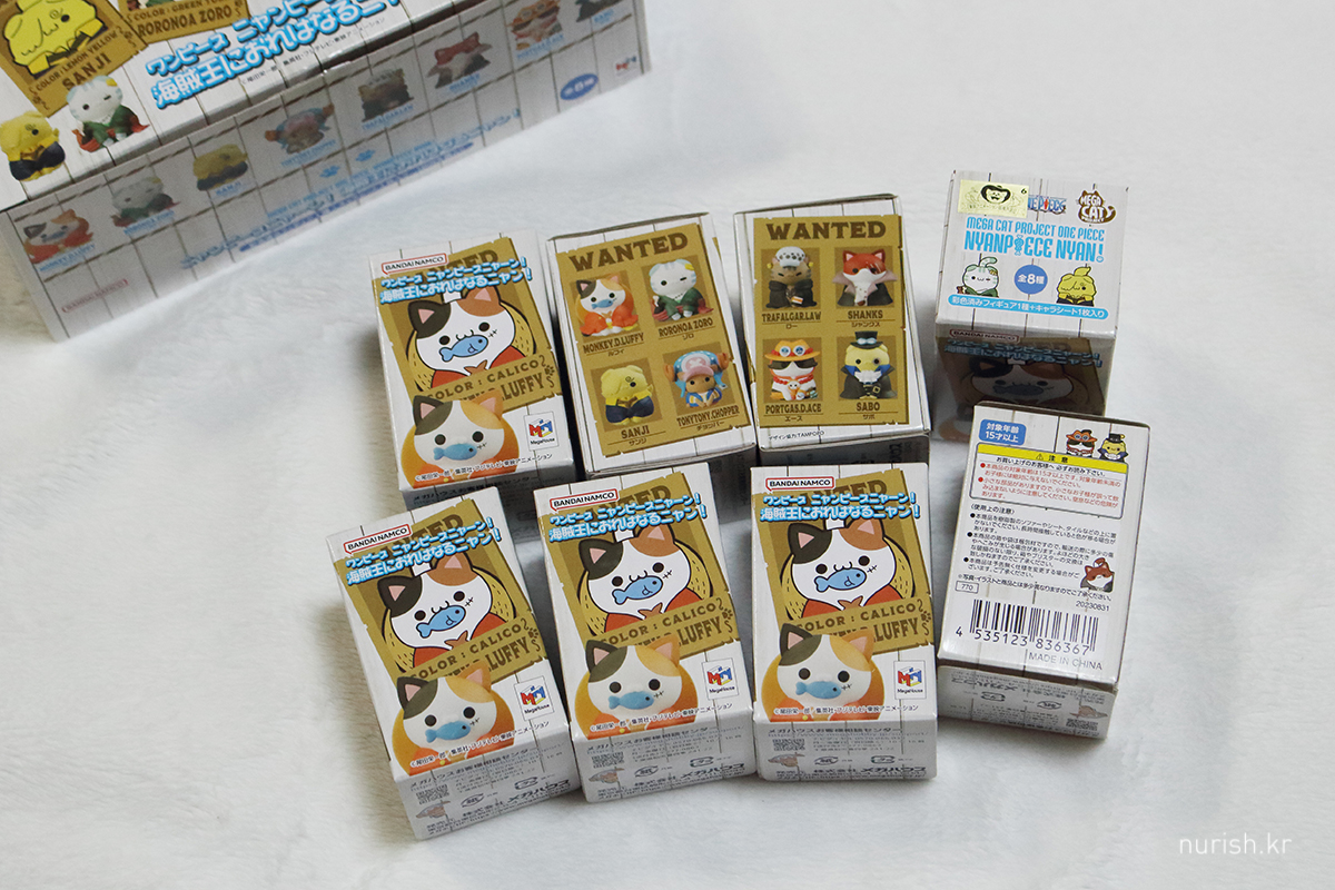 그러면서 피규어를 사고, 인형을 사고…… 예판 중인 큰냥피스 삼선장 세트 예약 걸고, 이왕이면 쪼꾸미들도 갖고 싶다 하던 차에 메루카리에서 썩 나쁘지 않은 가격에 올라온 1탄 풀박 미개봉을 발견하고, 럭스재팬에 구매대행 요청. 100엔 네고도 받았넴. 별건 아니지만 씐난다. ㅋㅋ 럭스재팬 친절하고 배송비도 저렴한 편인 거 같고(맞나?) 빨라서 마음에 든다.