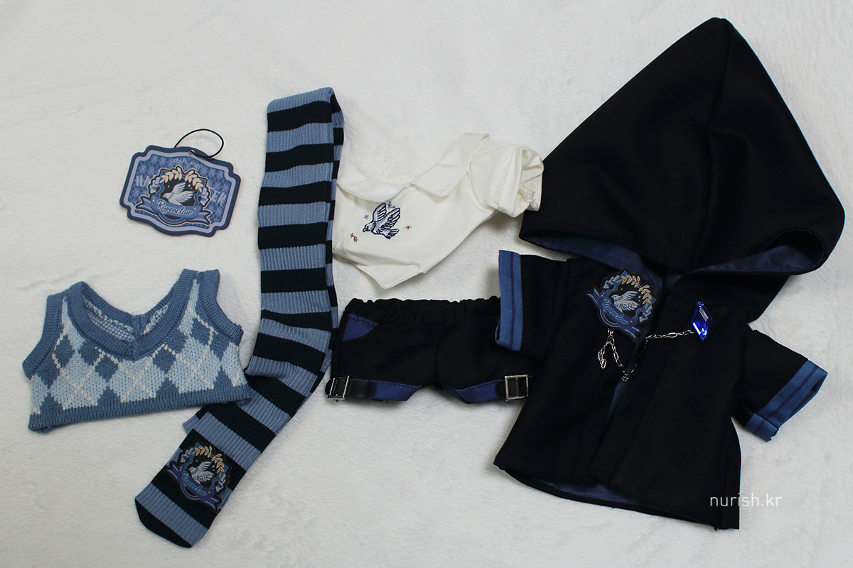 래번클로 교복 세트를 샀다. 로가 호그와트에 재학한다면 래번클로이지 않을까 혼자 생각 중. 정세가 어수선할 때 가족 잃고 슬리데린 도플라밍고 밑에 들어가지만, 후플푸프 로시난테 도움으로 빠져나오고, 그리핀도르 루피와 키드 편에 서서 같이 싸운다는 이야기(?)