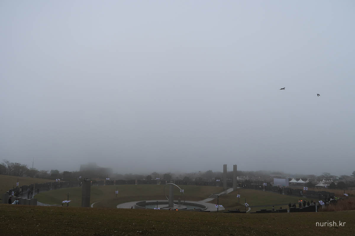 다행히 추념식 진행되는 한 시간 동안은 비가 멎다시피 했다. ㅜㅜ