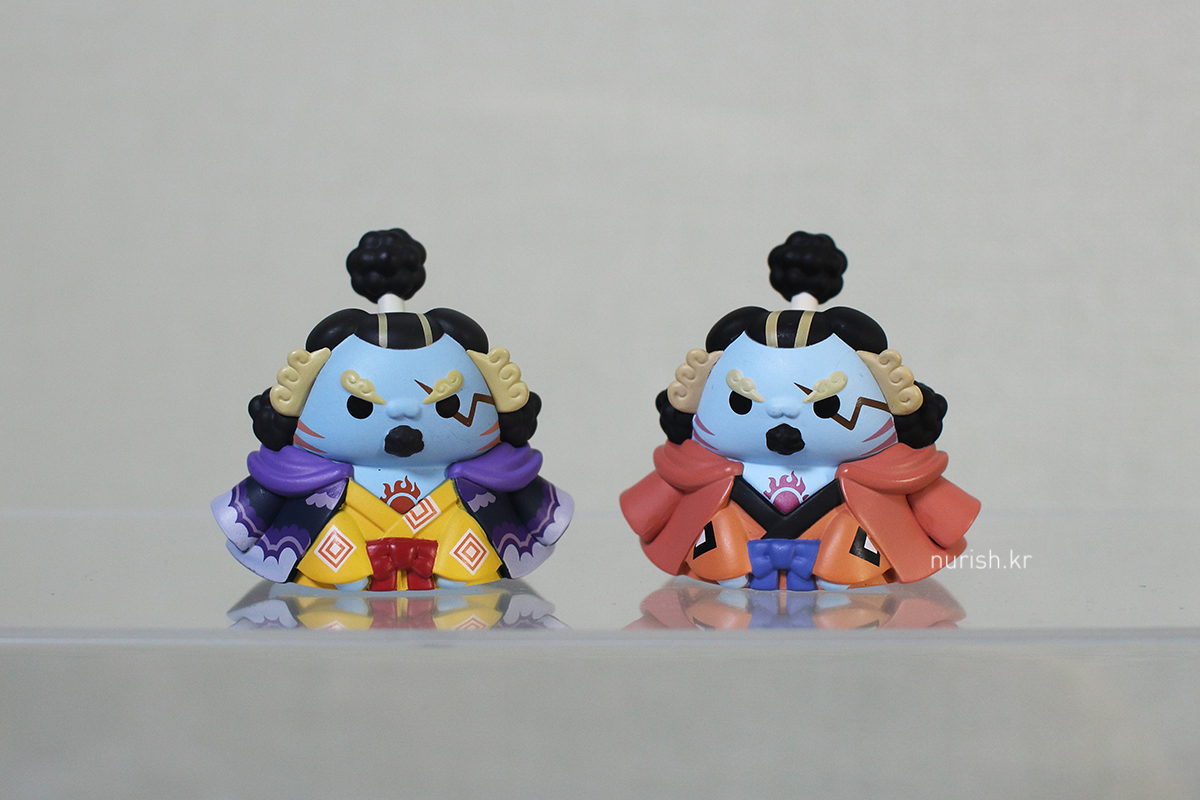 3탄 징베냥과 4탄 징베냥 나란히, 4탄 징베냥의 색깔이 조금 더 연해 보인다.