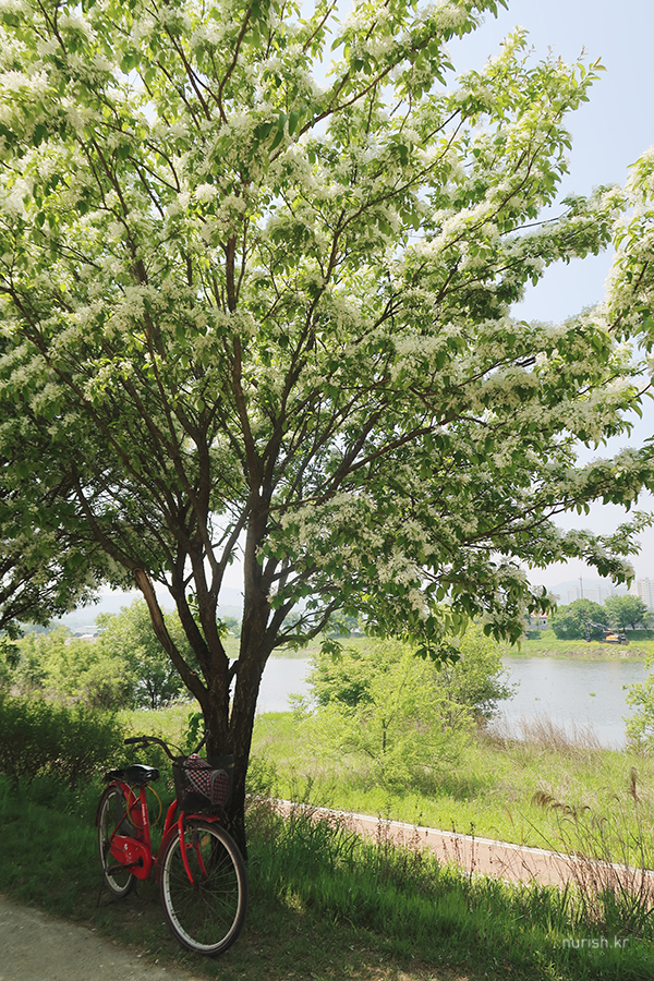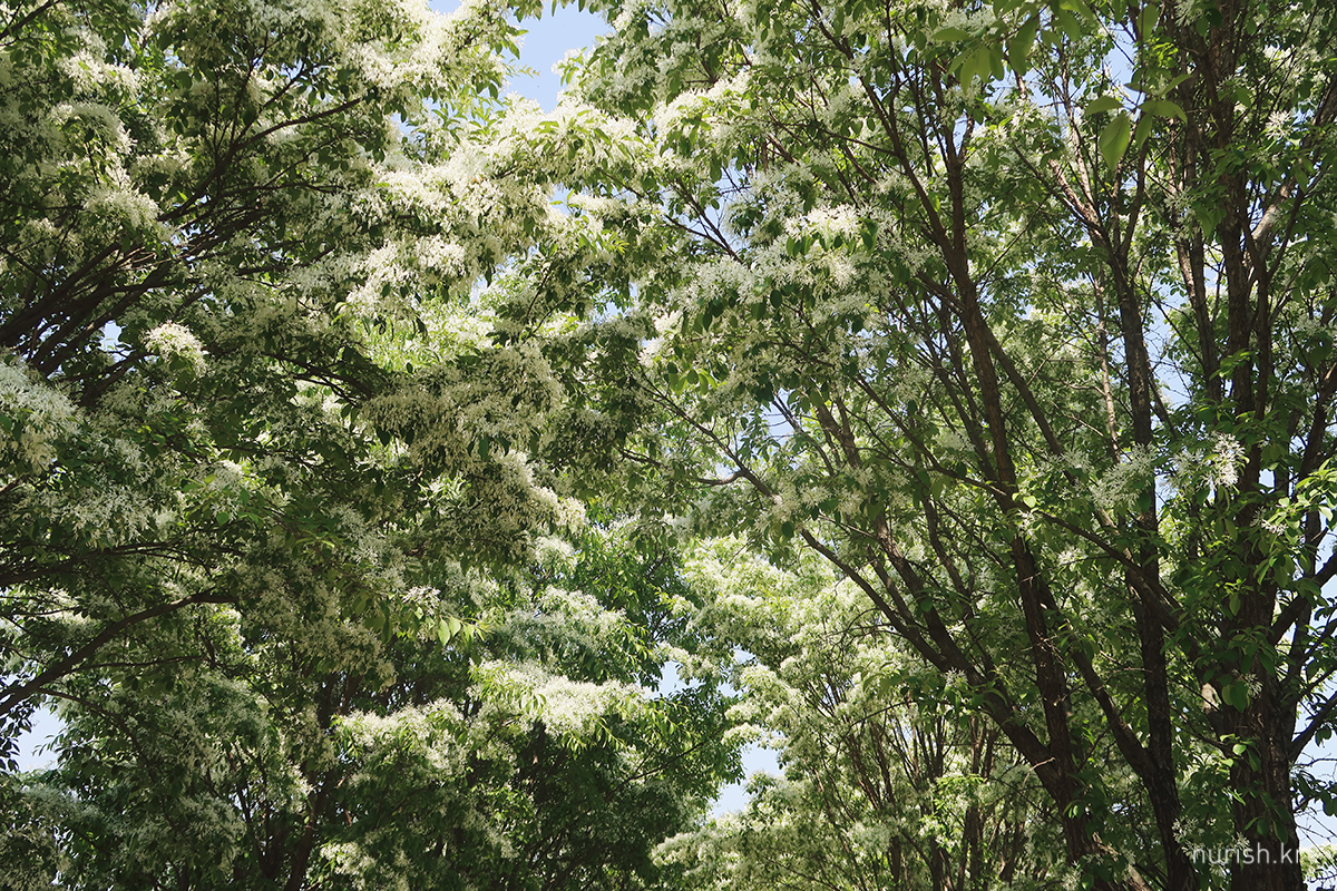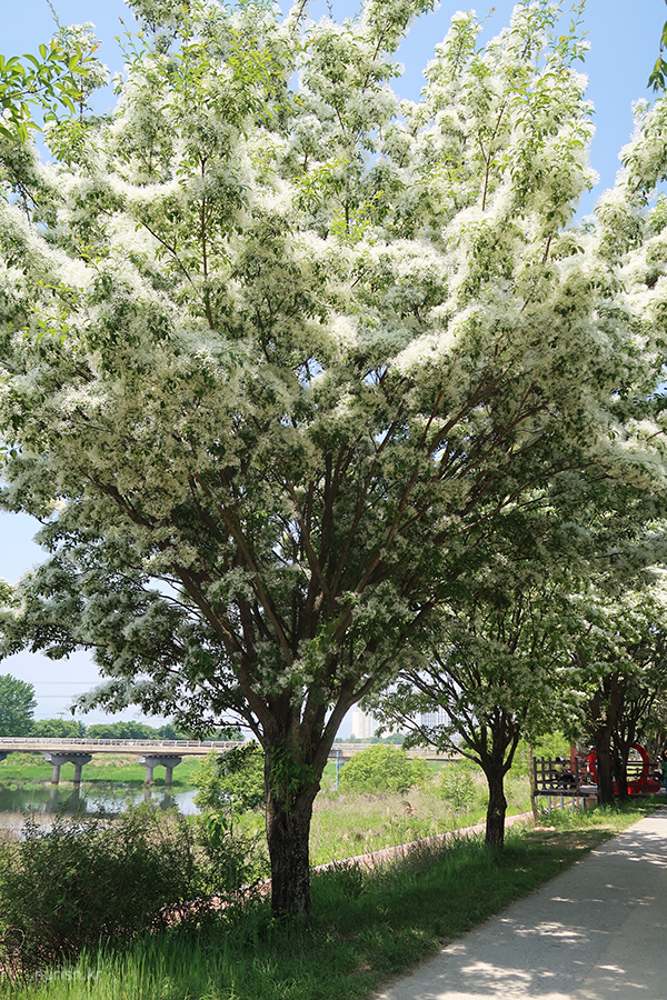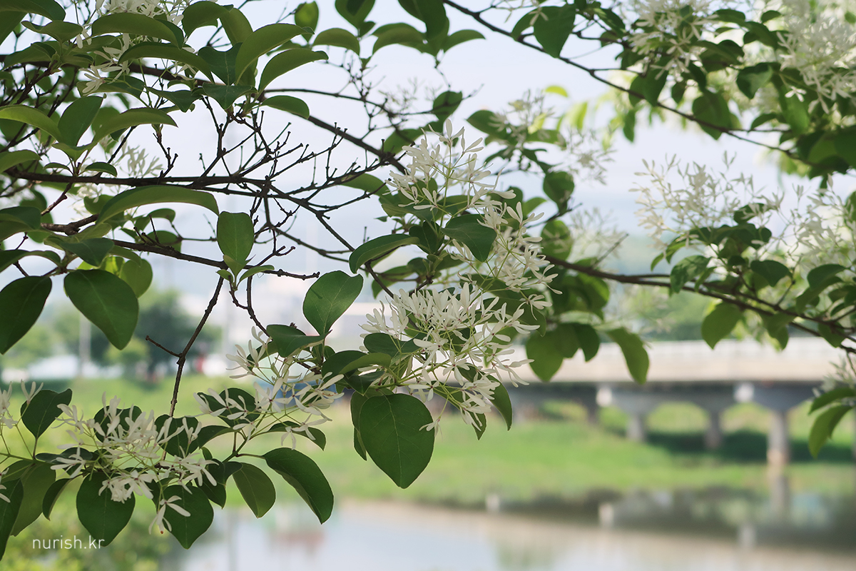 꽃송이가 사발에 소복이 얹힌 흰 쌀밥 같아서 '이밥나무'라고 부르던 게 '이팝나무'가 되었다는 설도 있고, '입하(入夏)' 무렵 꽃이 피기 때문에 '입하목'이라고 부르던 게 '이팝나무'가 되었다는 설이 있다는데, 내 눈에는 어떻게 봐도 샐러드에 뿌려 놓은 간 치즈들 ㅎㅎ 이러나 저러나 참 귀엽다.