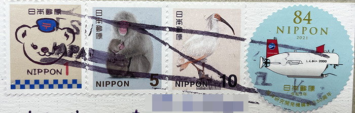 맨 오른쪽 우표는 2021년 10월 1일 발행된 '해양연구개발기구(JAMSTEC) 창립 50주년' 우표