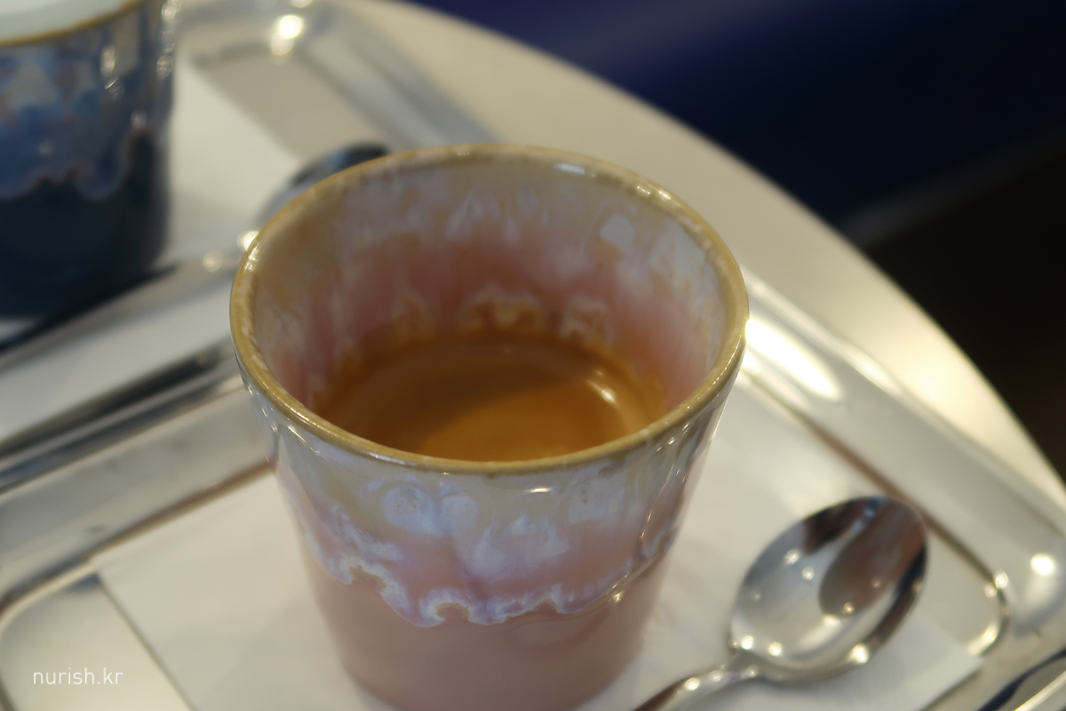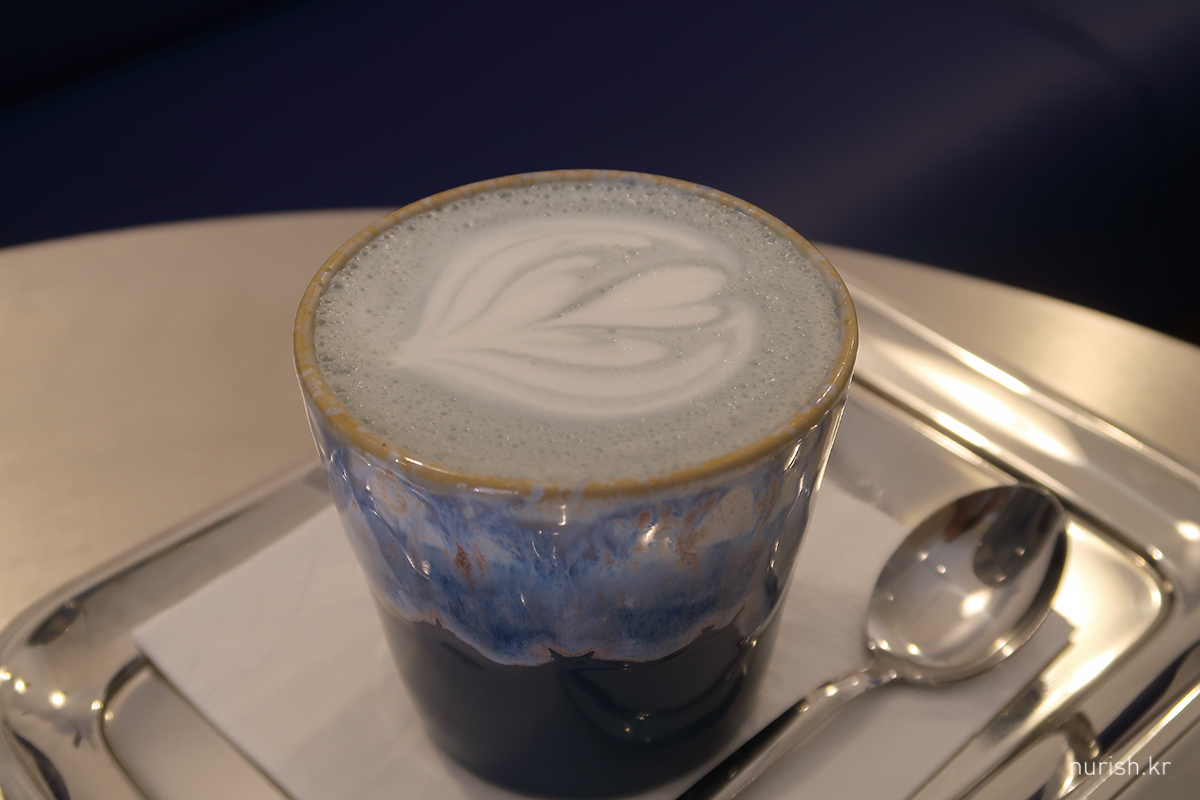 숙소 앞에 있는 카페_에스프레소바 Neosly에서 버터플라이피라떼 한 잔