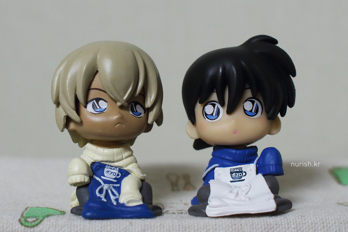 카페 포와로 알바생 아무로 토오루(후루야 레이)와 카페 포와로 알바생으로 분한 신이치(에도가와 코난)