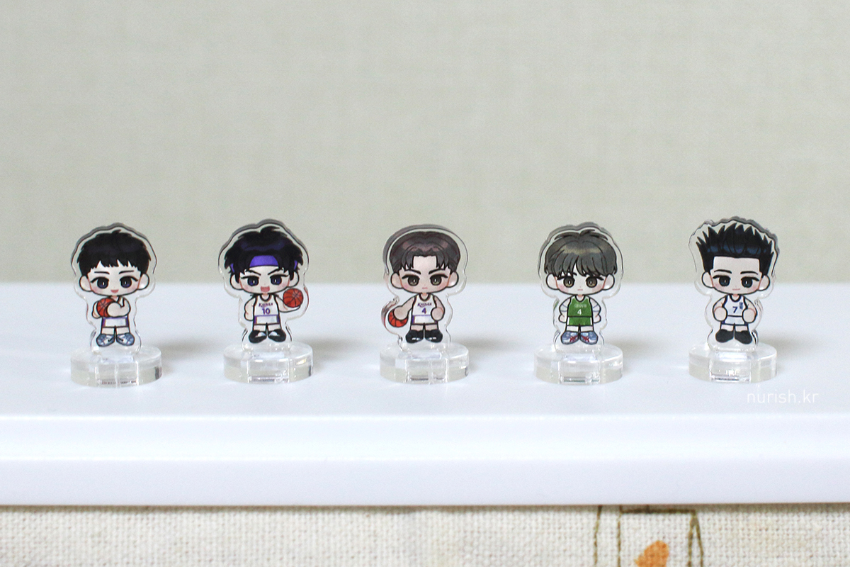 미니 아크릴 스탠드는 이렇게 일곱 명으로 구성되어 있는데, 명헌이와 우성이는 산왕 팬인 B가 데려갔다.