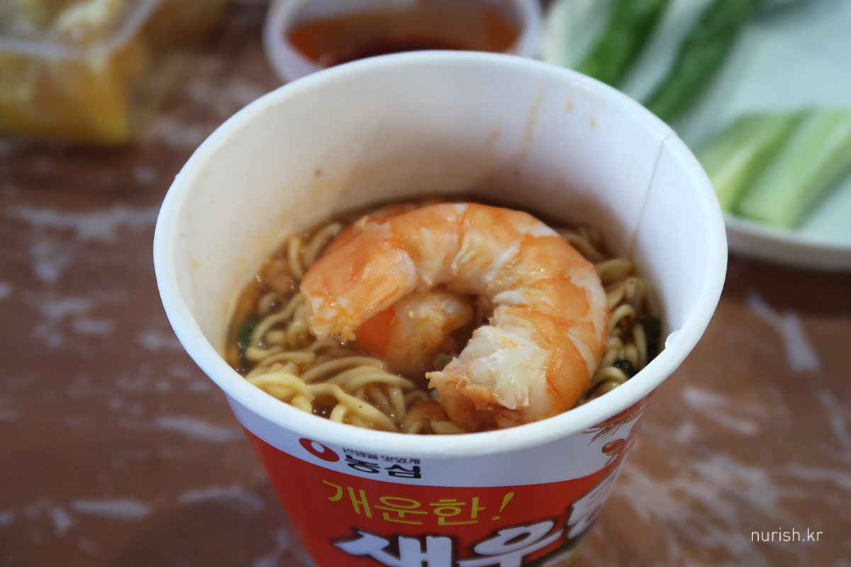열심히 까 먹은 후 마무리로 새우탕 세팅