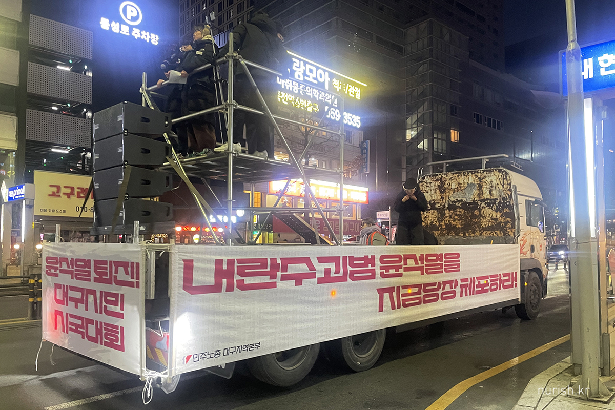 동대구역으로 돌아가려고 버스 정류장 찾아가는 길 마주친 윤 퇴진&국짐당 해체 행진 시위, 응원합니다!
