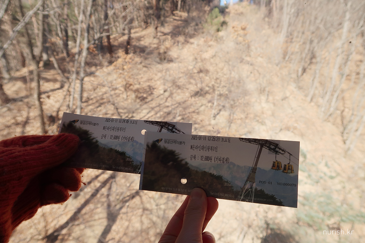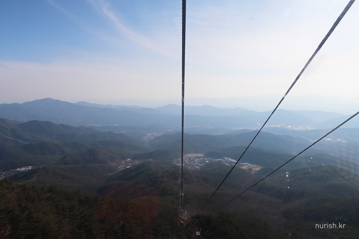 팔공산 위로 올라가기 위하여 케이블카를 탔다.