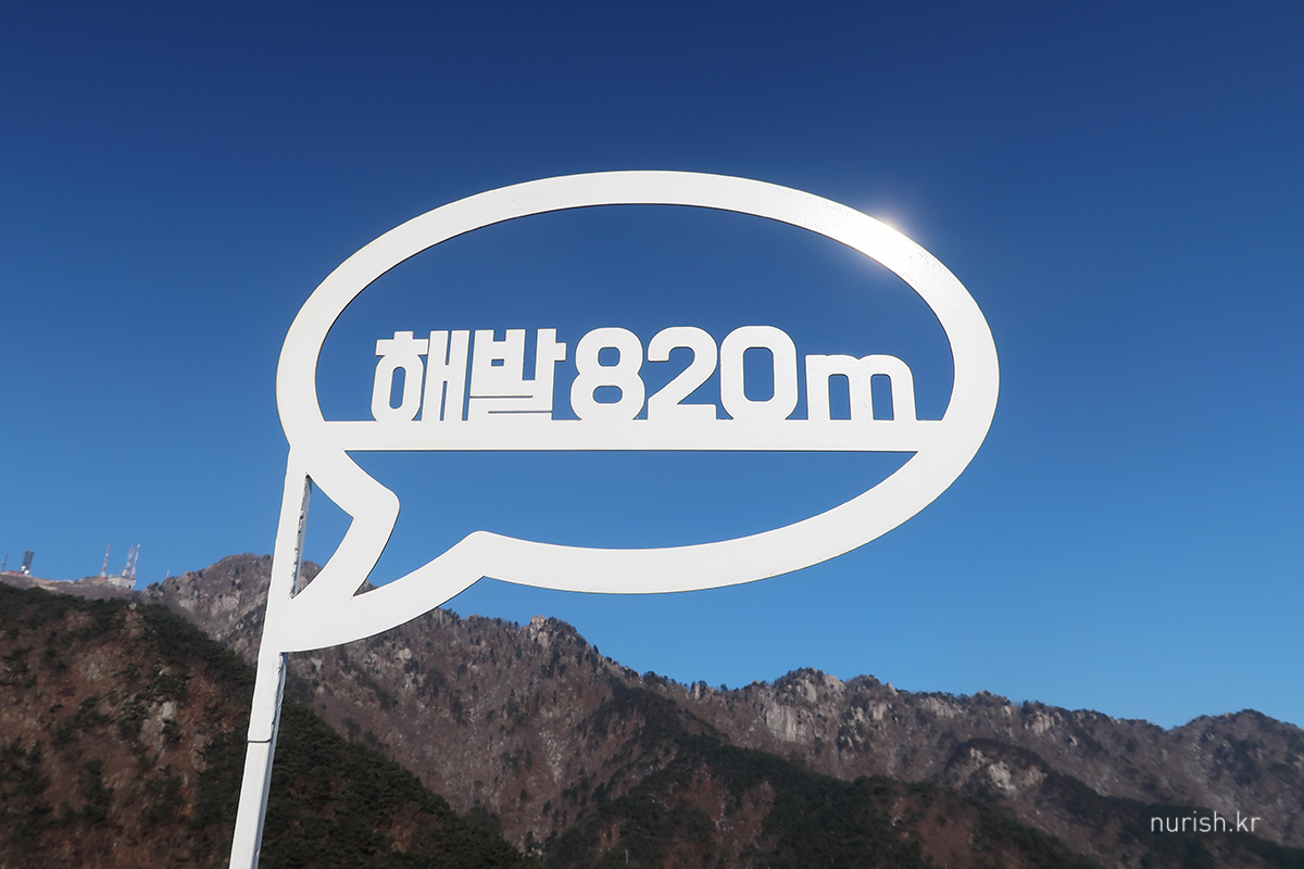 케이블카에서 내리면 해발 고도 820m 신림봉 도착
