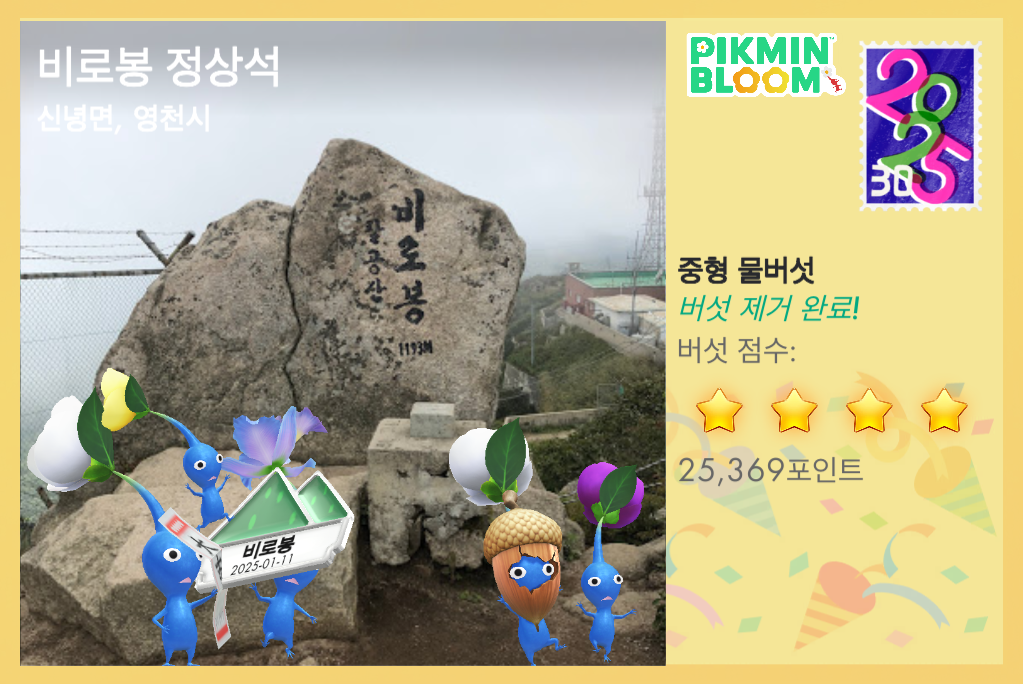 기념으로 팔공산 비로봉 정상석 버섯도 쳤다. 엽서는 산 같지 않지만, 비로봉 피크민이 잘 찍혀서 만족스럽다.