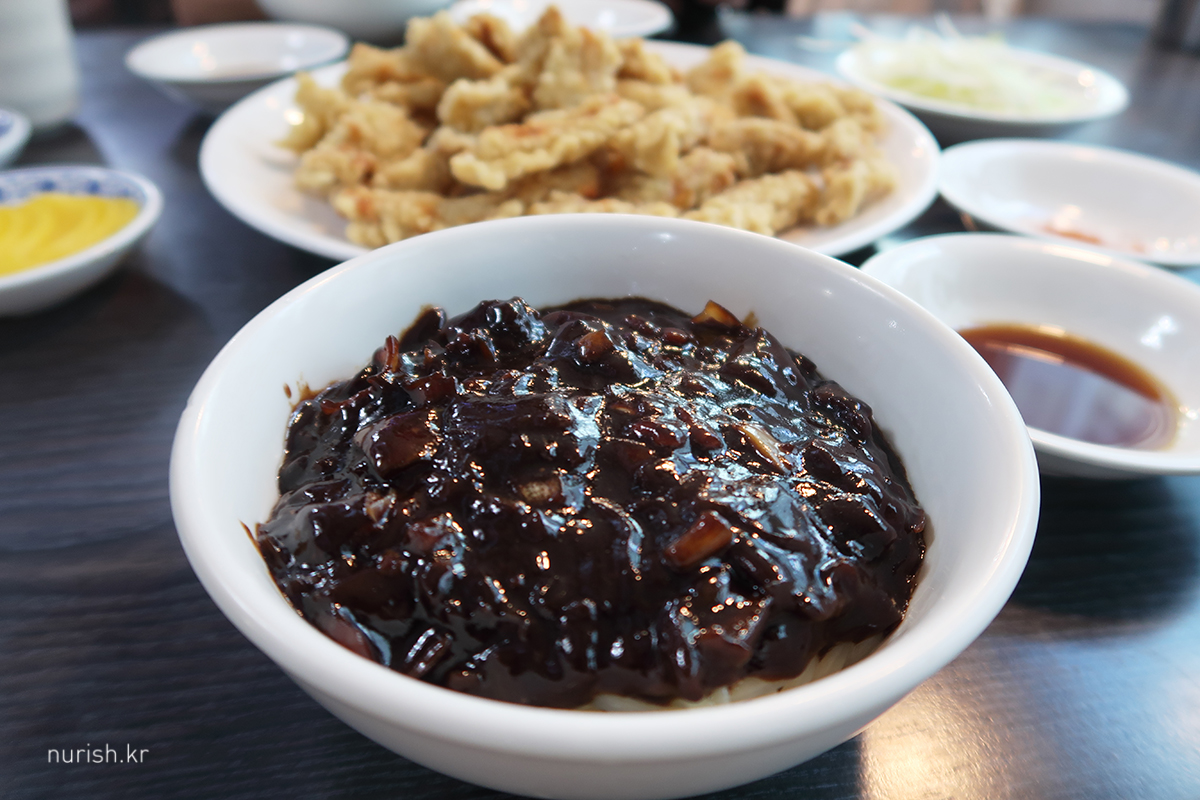 유니짜장 하나 시키면 둘이서 먹기 좋게 두 그릇으로 나눠서 주신다. 마음에 듦 ㅋㅋ