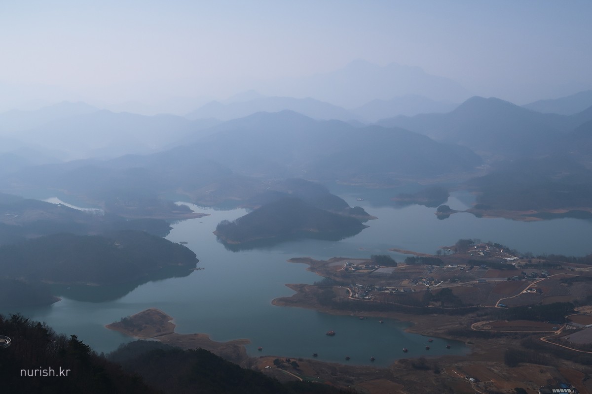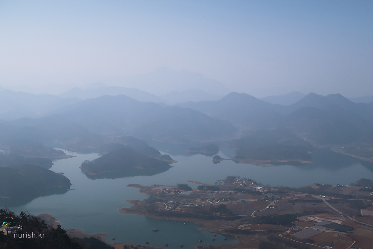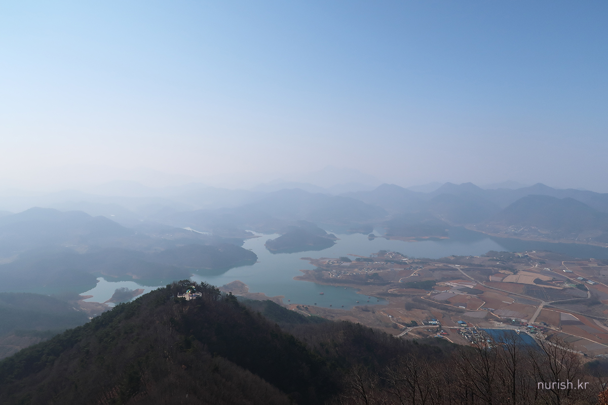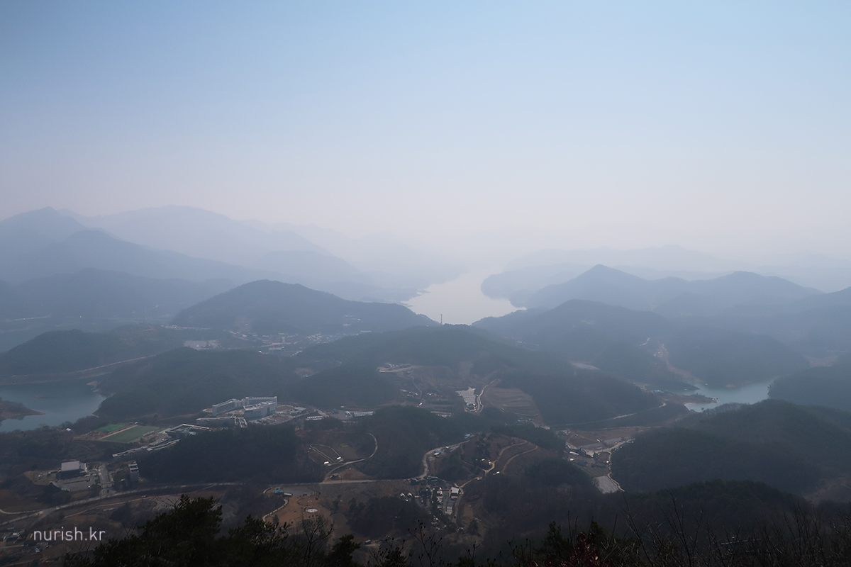 정상에서는 절경을 볼 수 있다. 미세먼지 때문에 하늘이 흩뿌연 게 조금 아쉽 ㅜㅜ