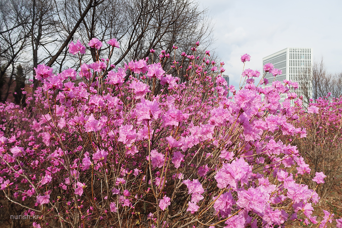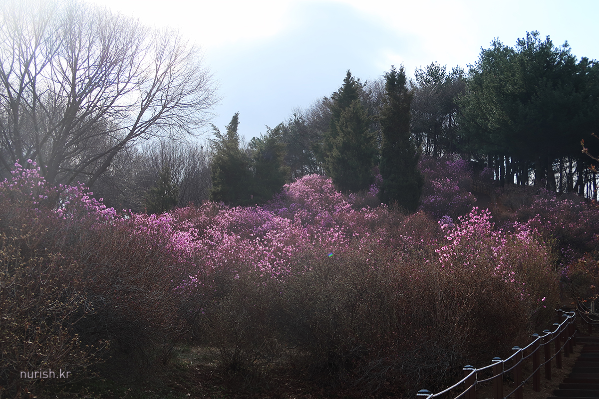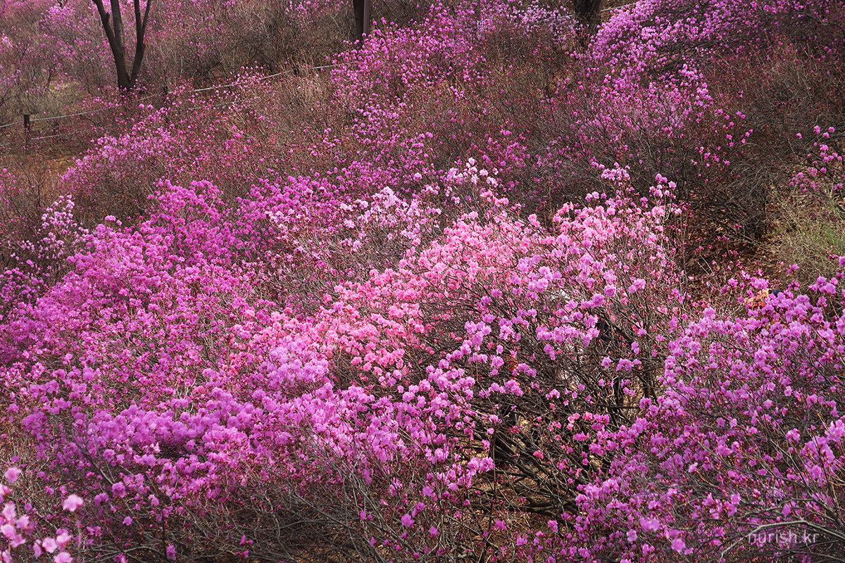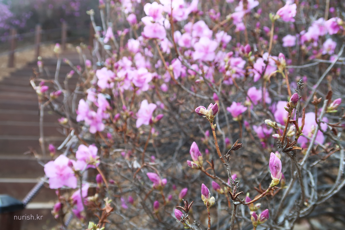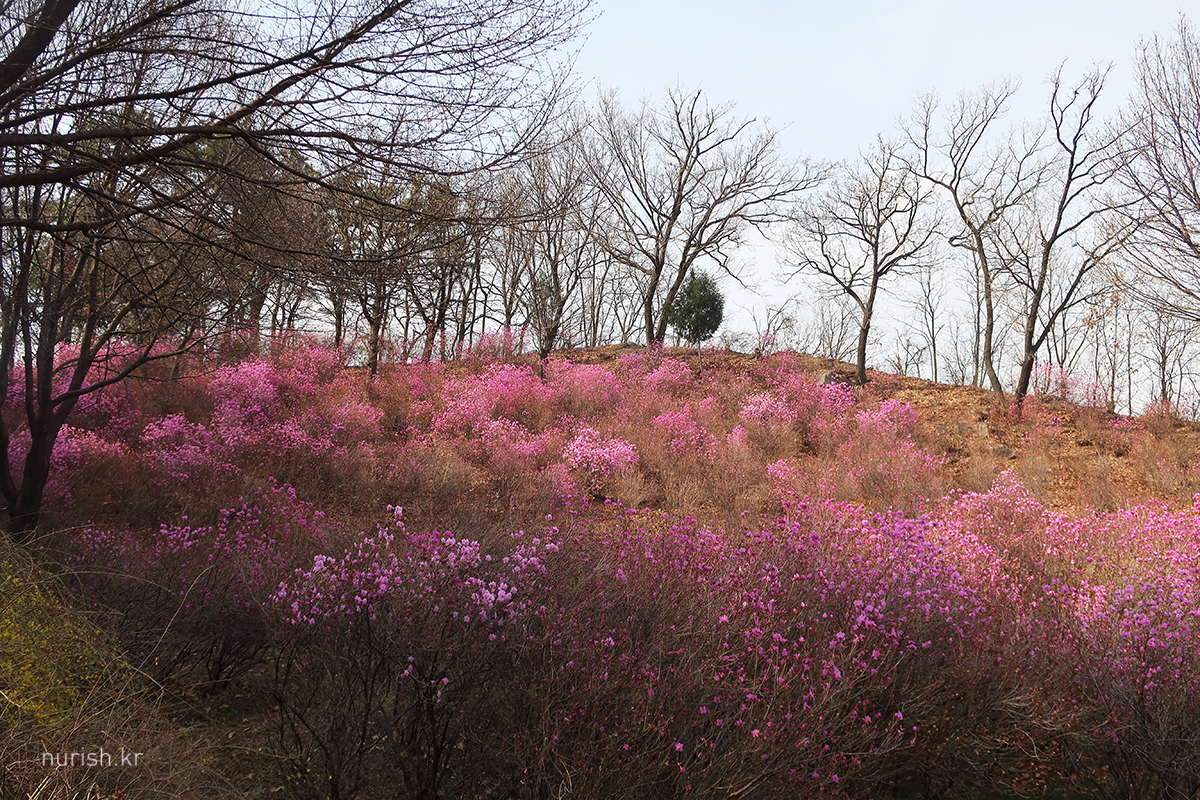 집 근처 부천에 진달래가 활짝 피었다는 소식을 듣고 달려왔다. 개화는 한 60% 정도 된 것 같은데, 주말 동안 눈보라에 몹시 쌀쌀하지만, 다음 주면 만개일 듯하다.