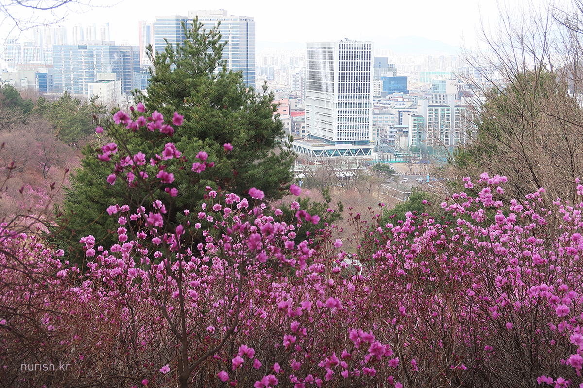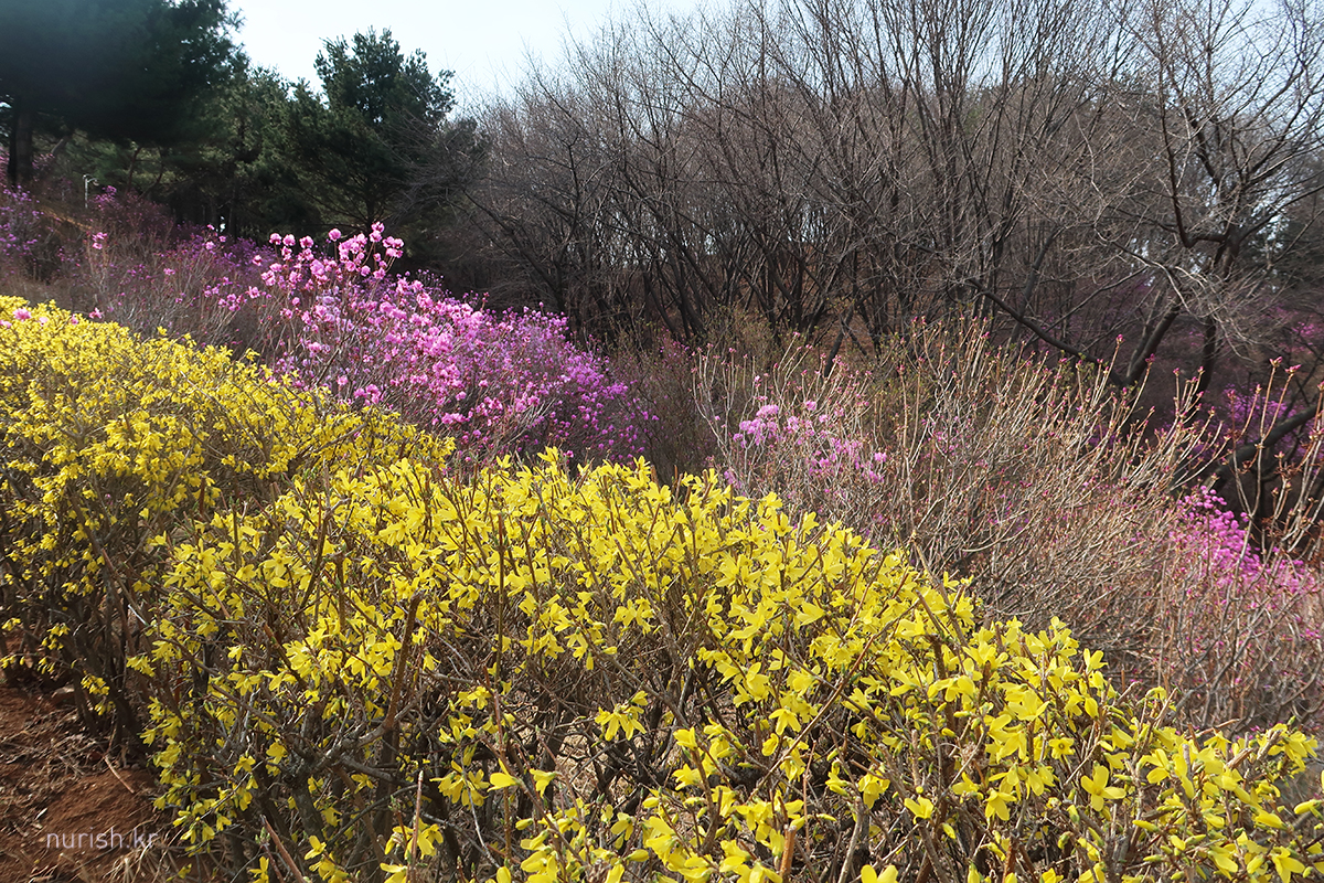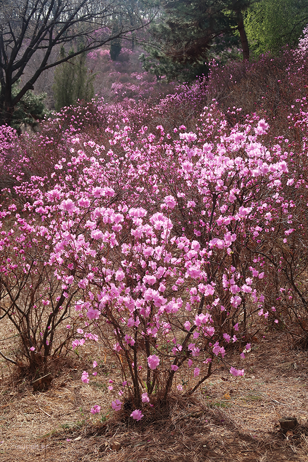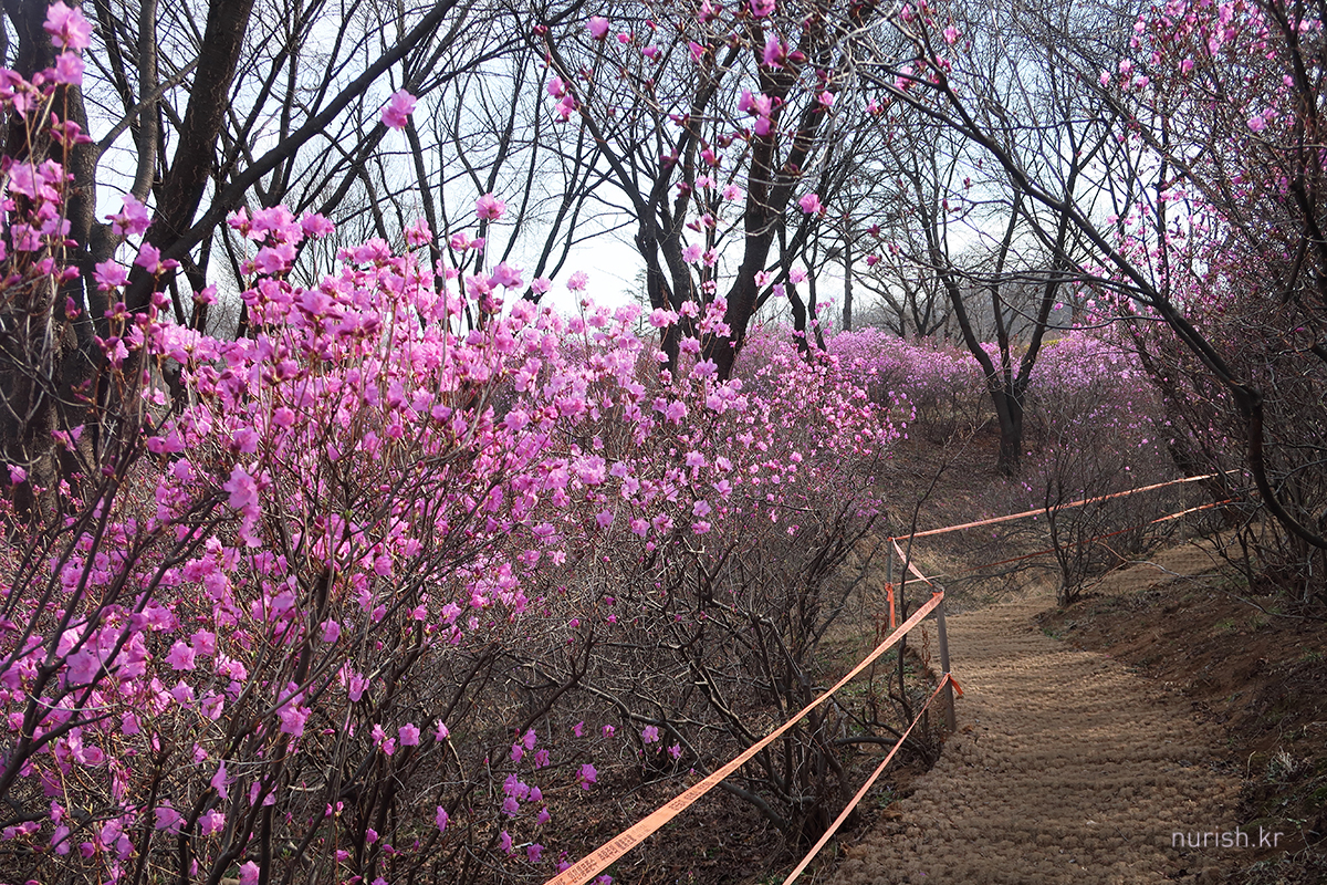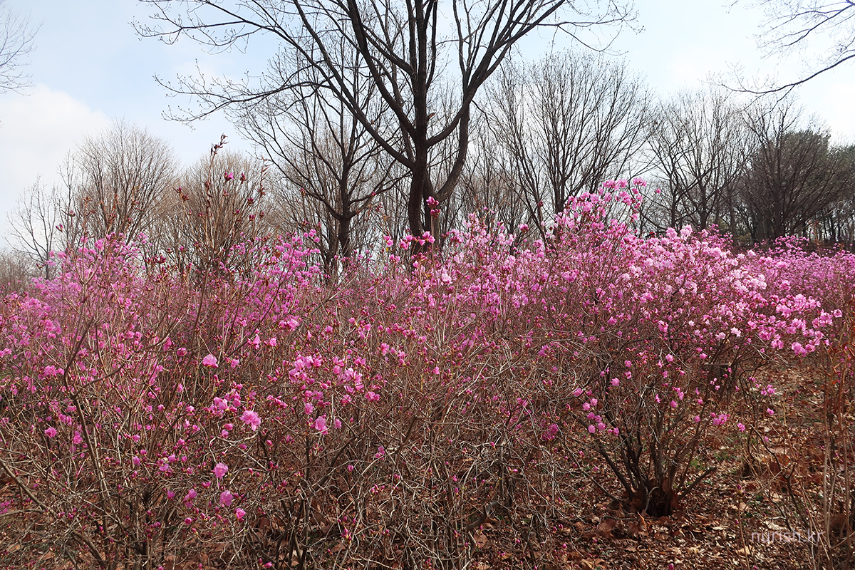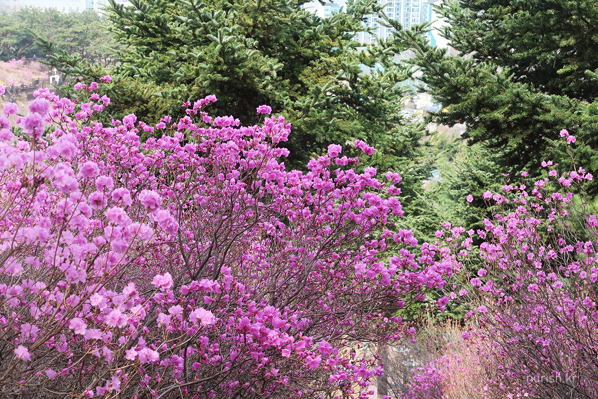 집 근처 부천에 진달래가 활짝 피었다는 소식을 듣고 달려왔다. 개화는 한 60% 정도 된 것 같은데, 주말 동안 눈보라에 몹시 쌀쌀하지만, 다음 주면 만개일 듯하다.