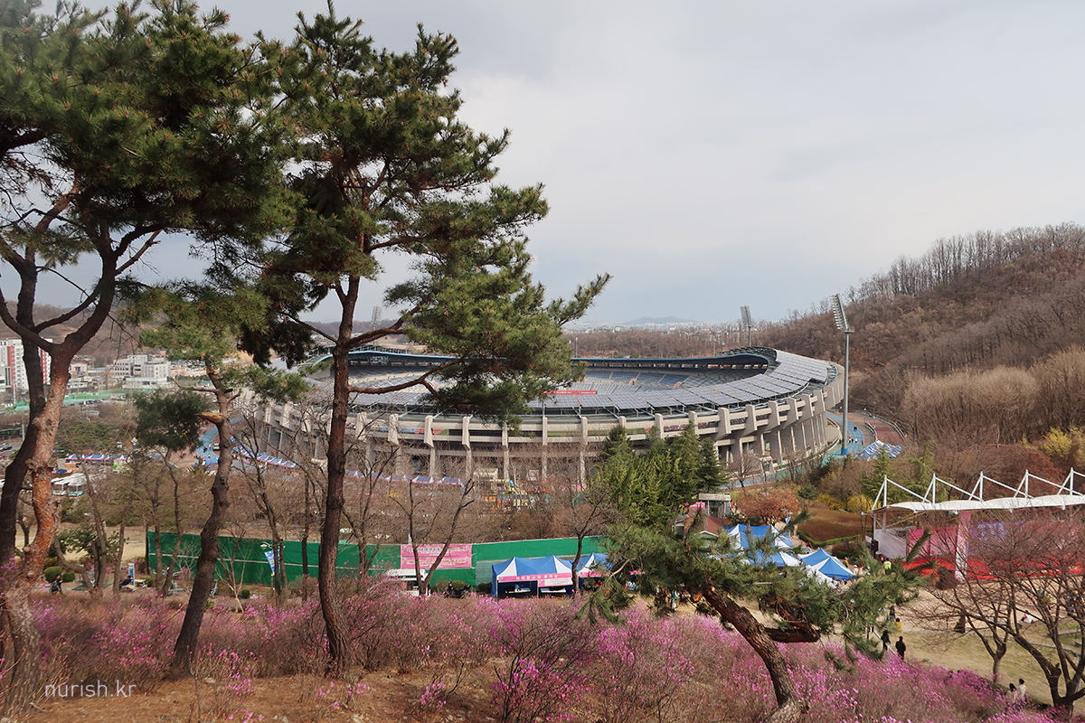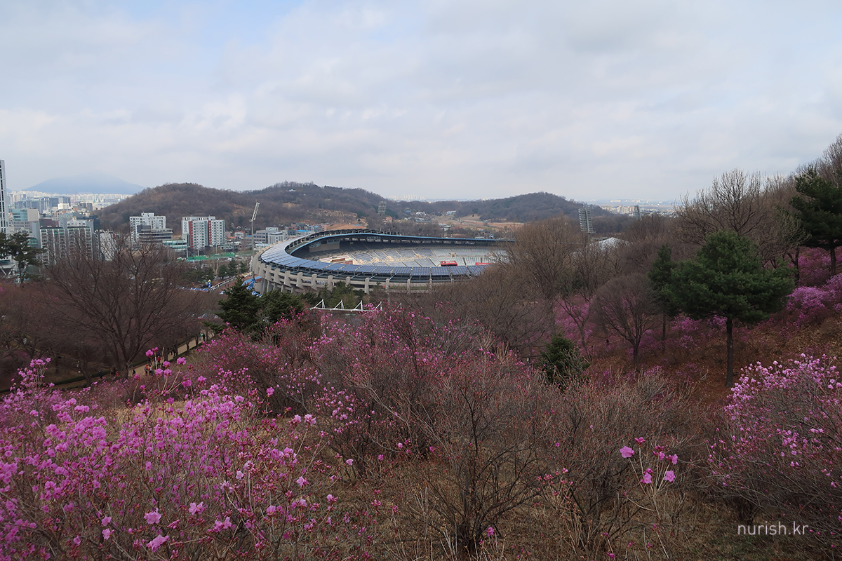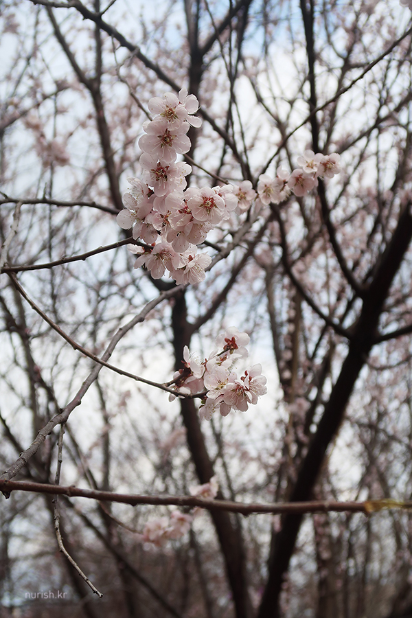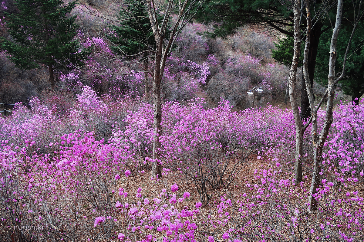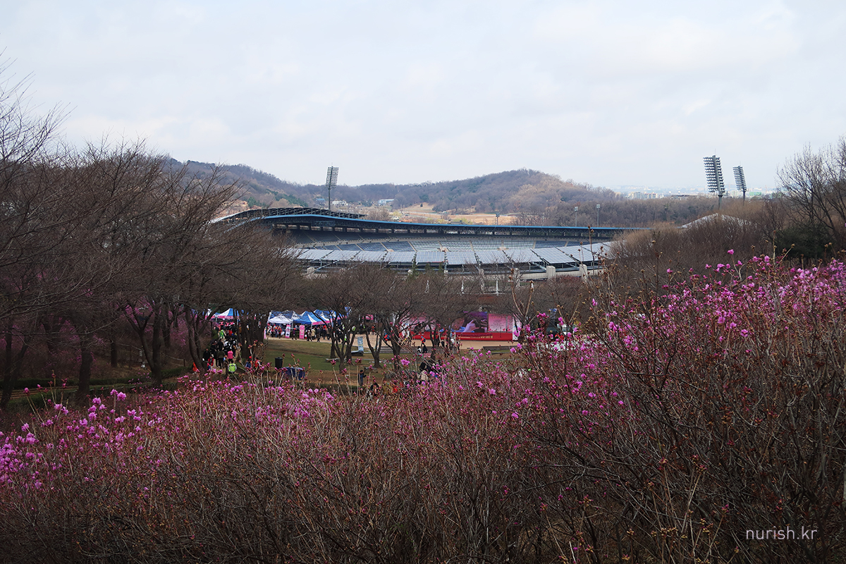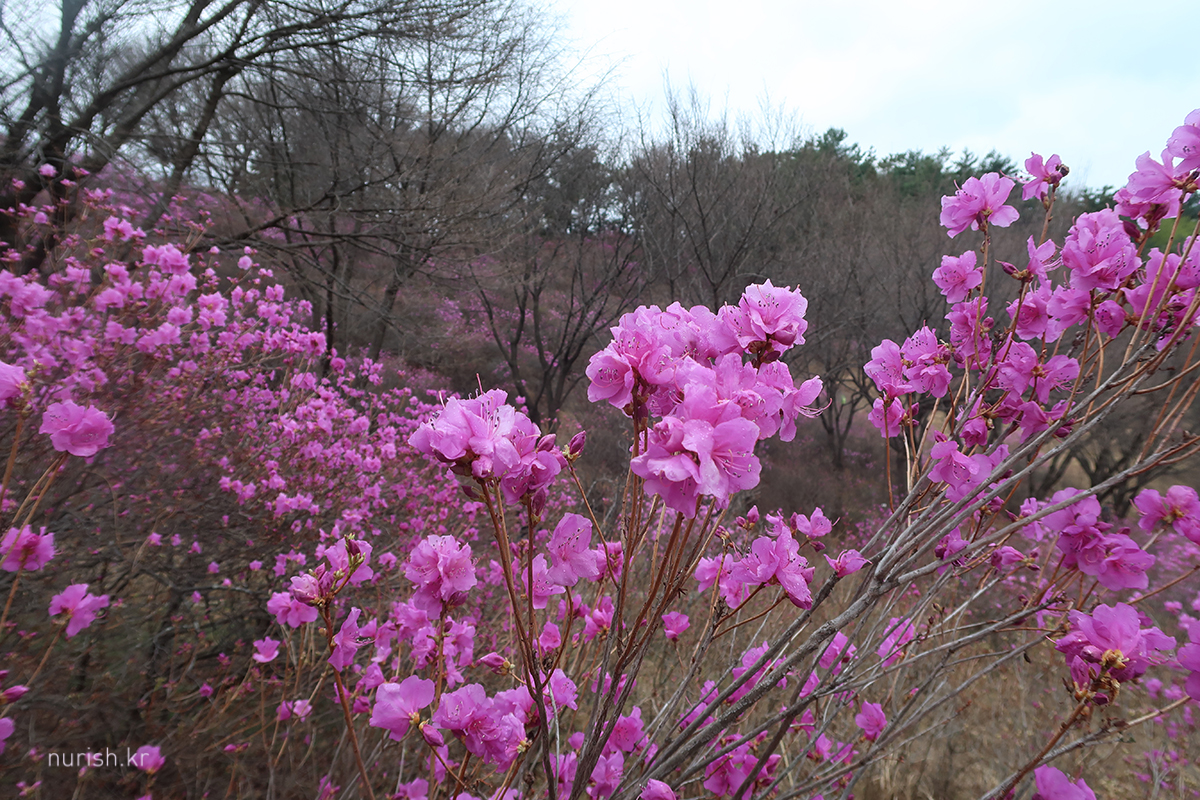 집 근처 부천에 진달래가 활짝 피었다는 소식을 듣고 달려왔다. 개화는 한 60% 정도 된 것 같은데, 주말 동안 눈보라에 몹시 쌀쌀하지만, 다음 주면 만개일 듯하다.